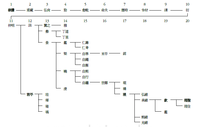 하지만 이를 대동보 형식으로 만들려니 [1]과 같은 방식으로는 만들 수 없다는 것을 깨닫고 [2]와 같은 방식으로 부계 자손에 대한 체계적 수단收單 작업을 하게 되는 것이다.