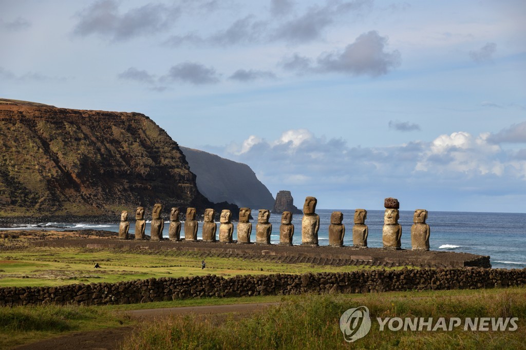 (서울=연합뉴스) 유한주 기자 = 남태평양에 위치한 작은 화산섬인 칠레령 이스터섬에서 산불이 나는 바람에 사람 얼굴의 ′모아이′ 거석상 여러 개가 훼손됐다고 AFP 통신과 BBC 방송 등 외신이 6