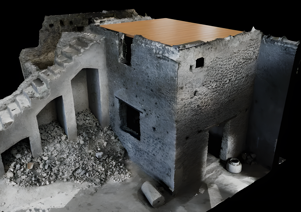 벽 손상을 근거로 전문가들은 이 건물이 화산 폭발로 붕괴되었을 가능성이 높다고 추정한다.