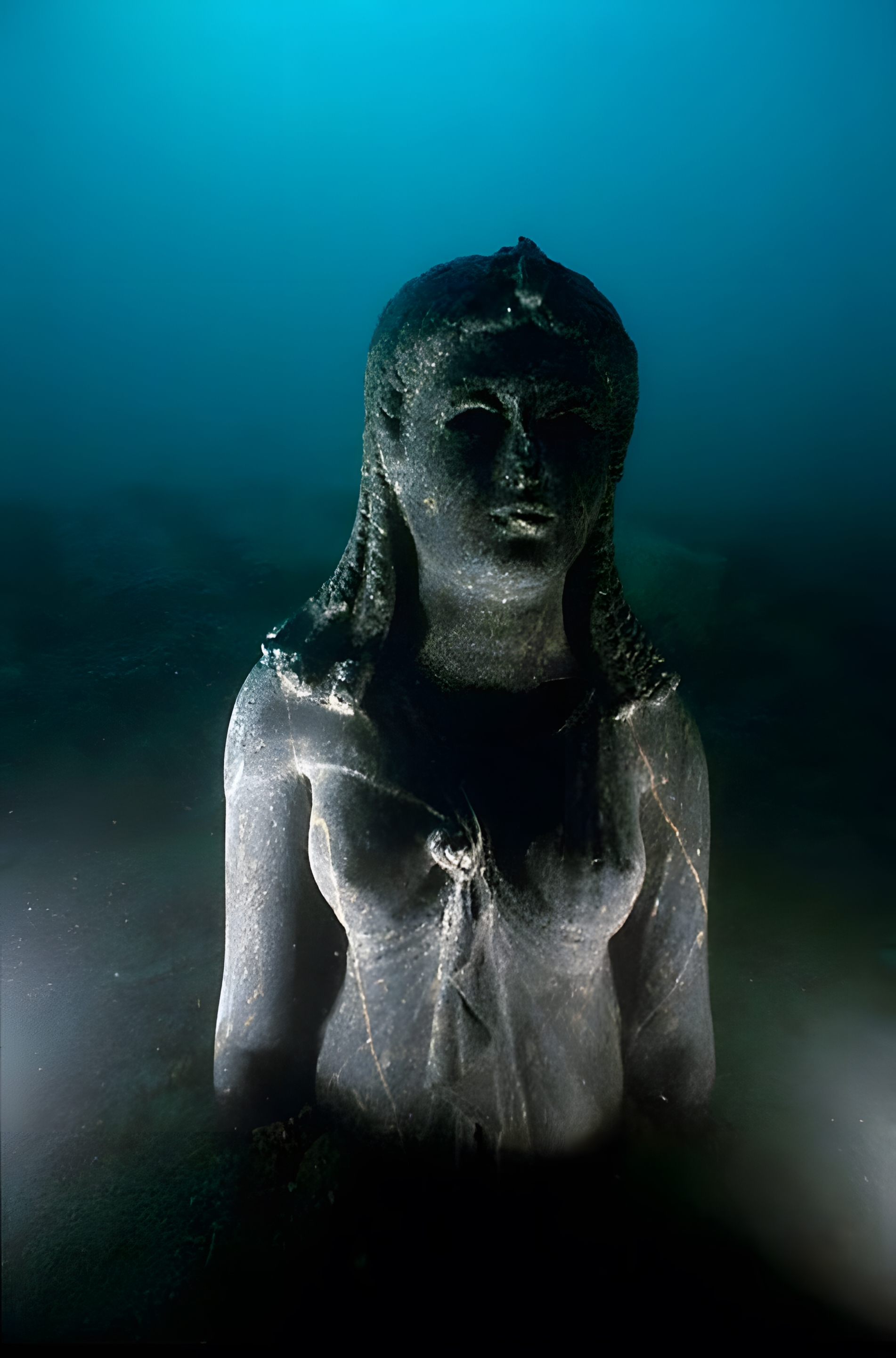 Franck Goddio examines the stele of Thonis-Heracleion erected on site under water in the city of Thonis-Heracleion, Abukir Bay. The intact stele (1.99 m) is inscribed with the decree of Saϊs. It was commissioned by Nectanebos I (380-362 BC). The place where the Pharaoh ordered it to be set up is clearly named: Thonis-Heracleion. ©Franck Goddio/Hilti Foundation, photo: Christoph Gerigk. 프랑크 고디오Franck Goddio가 비석을 조사 중이다. 손상되지 않은 이 비석(1.99m)에는 사이스Sais 법령이 새겨져 있다. 넥타네보스 1세(Nectanebos I, 기원전 380-362년)가 의뢰했다. 파라오가 그것을 세우라고 명령한 장소 이름은 분명히 토니스=헤라클레이온Thonis-Heracleion이다.