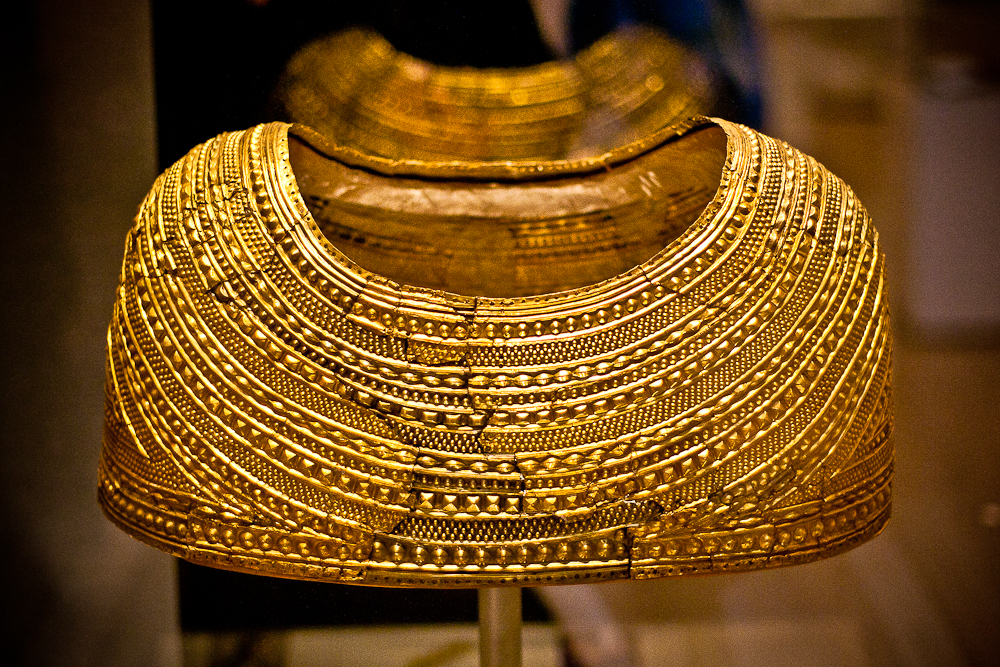 1833년 웨일스 몰드Mold에서 발견된 놀라운 황금 망토gold cape는 청동기 시대 의례 관습을 엿볼 수 있는 희귀하고 신비로운 유물이다.