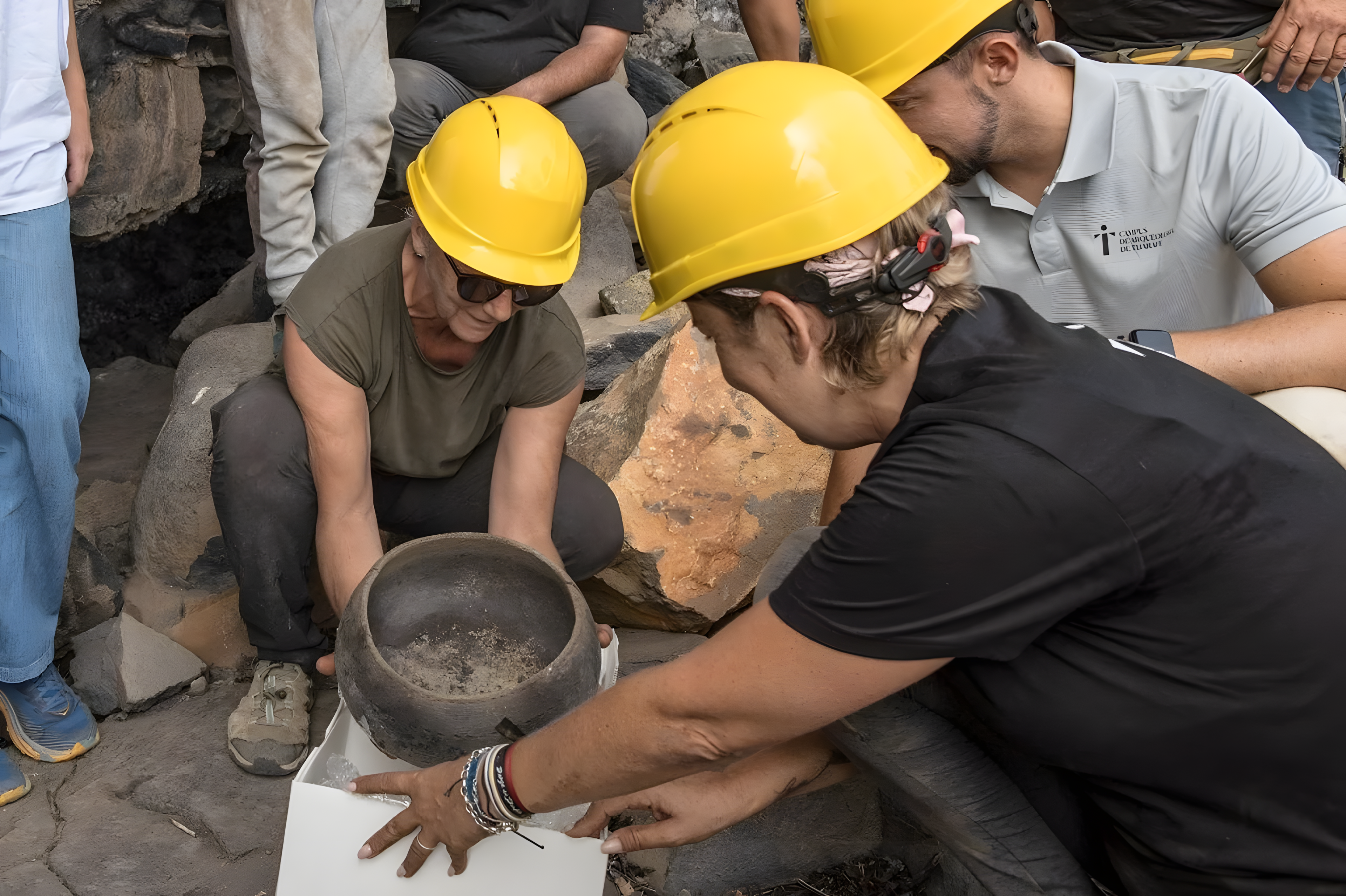 이 용기는 2024년 엘 헤수스El Jesús 근처 바랑코 데 로스 고메로스arranco de Los Gomeros에 위치한 쿠에바 데 라스 히메나스Cueva de Las Jimenas에서 발견되었다.