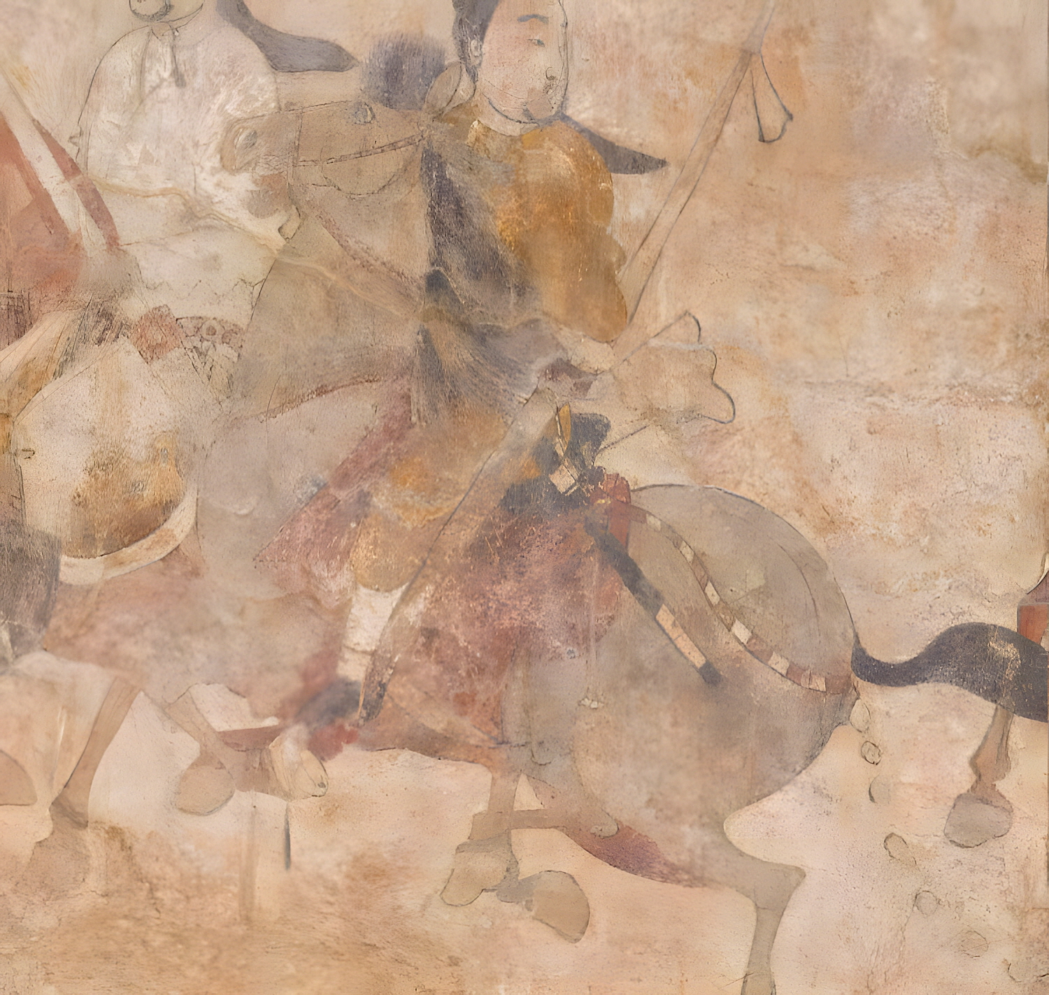 이는 중국 산서성 태원시太原市에서 발굴된 북제北齐시대 고관대작 루예娄叡라는 사람 무덤 내부 중에서도 동쪽 벽면을 장식한 안마유기도鞍马游骑图라는 프레스코화 전체 장면이라