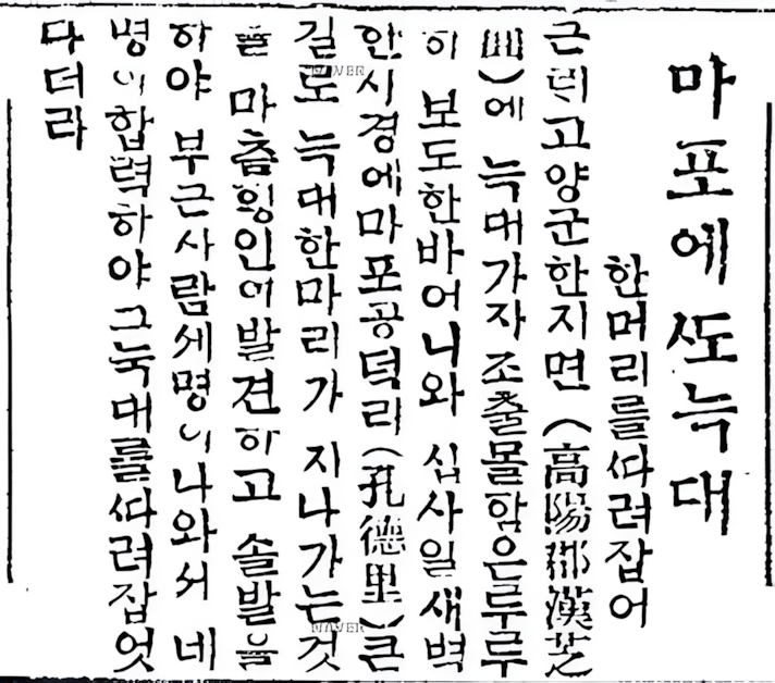 100년 전 마포 공덕동에 나타났다는 늑대