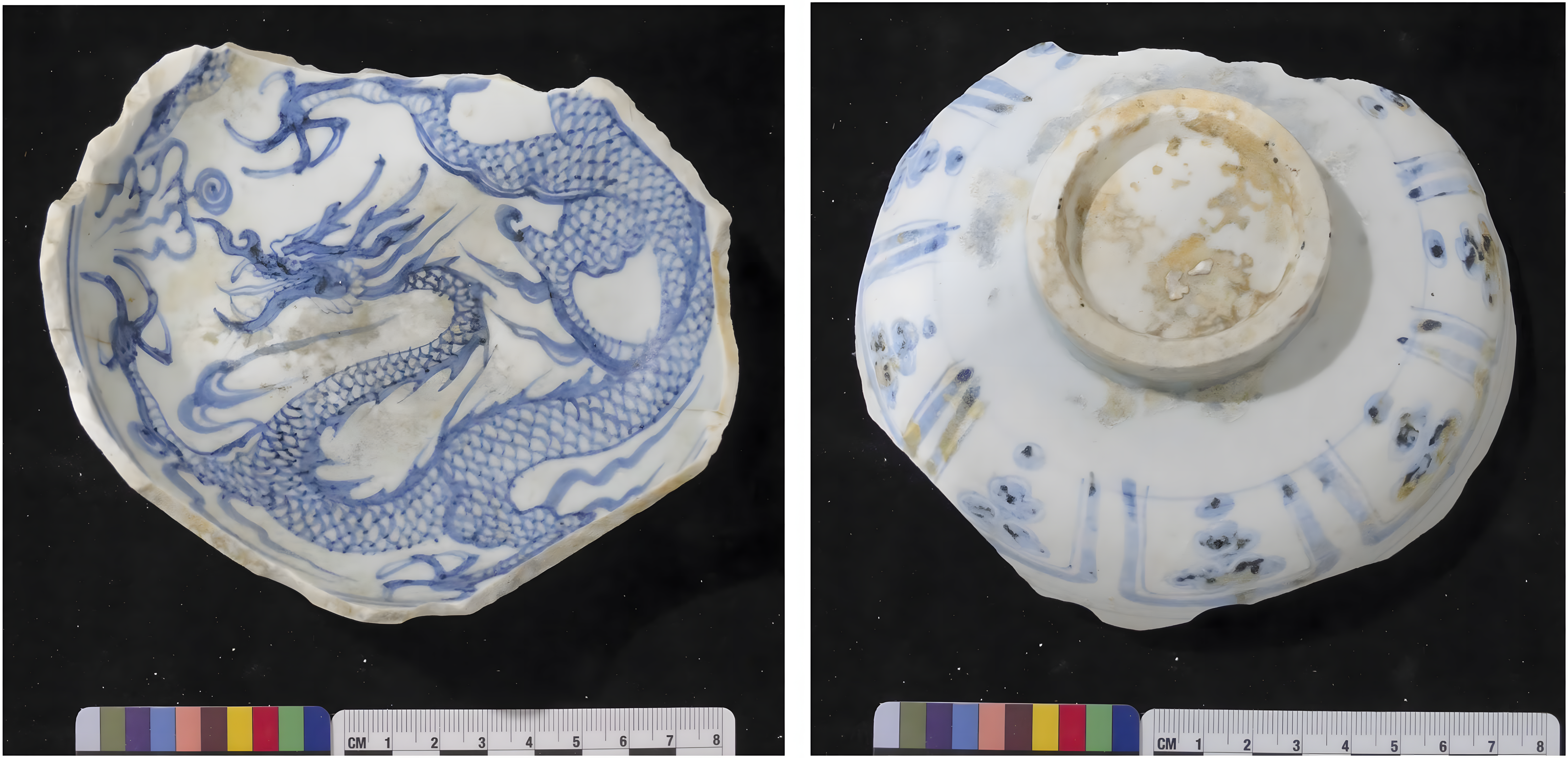 그들은 청화백자 그릇 안쪽에 연못에 앉아 있는 원앙이 반복적으로 묘사된 것을 발견했다.