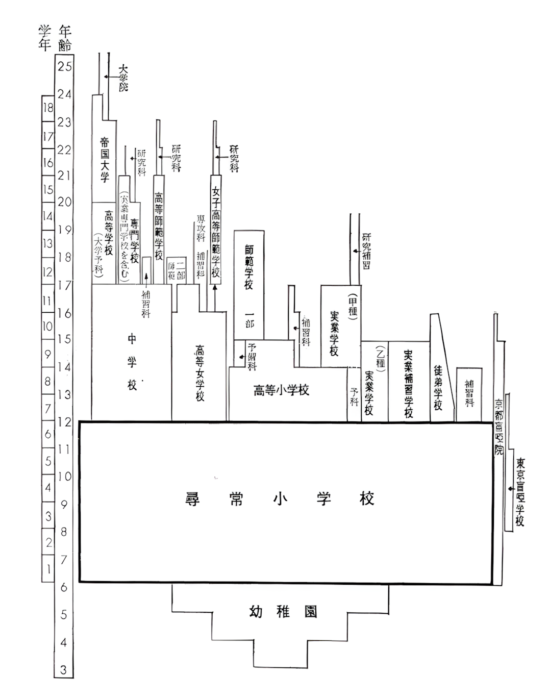 이 시기 일본의 교육제도를 보면 아래 표와 같다.