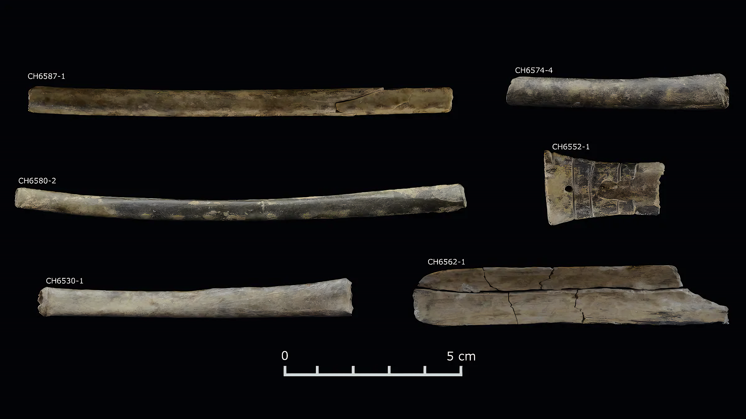 고고학자들은 이 갤러리를 탐사하면서 동물 뼈와 조개껍질을 조각하여 관과 숟가락 형태로 만든 23개 유물을 발견했다.