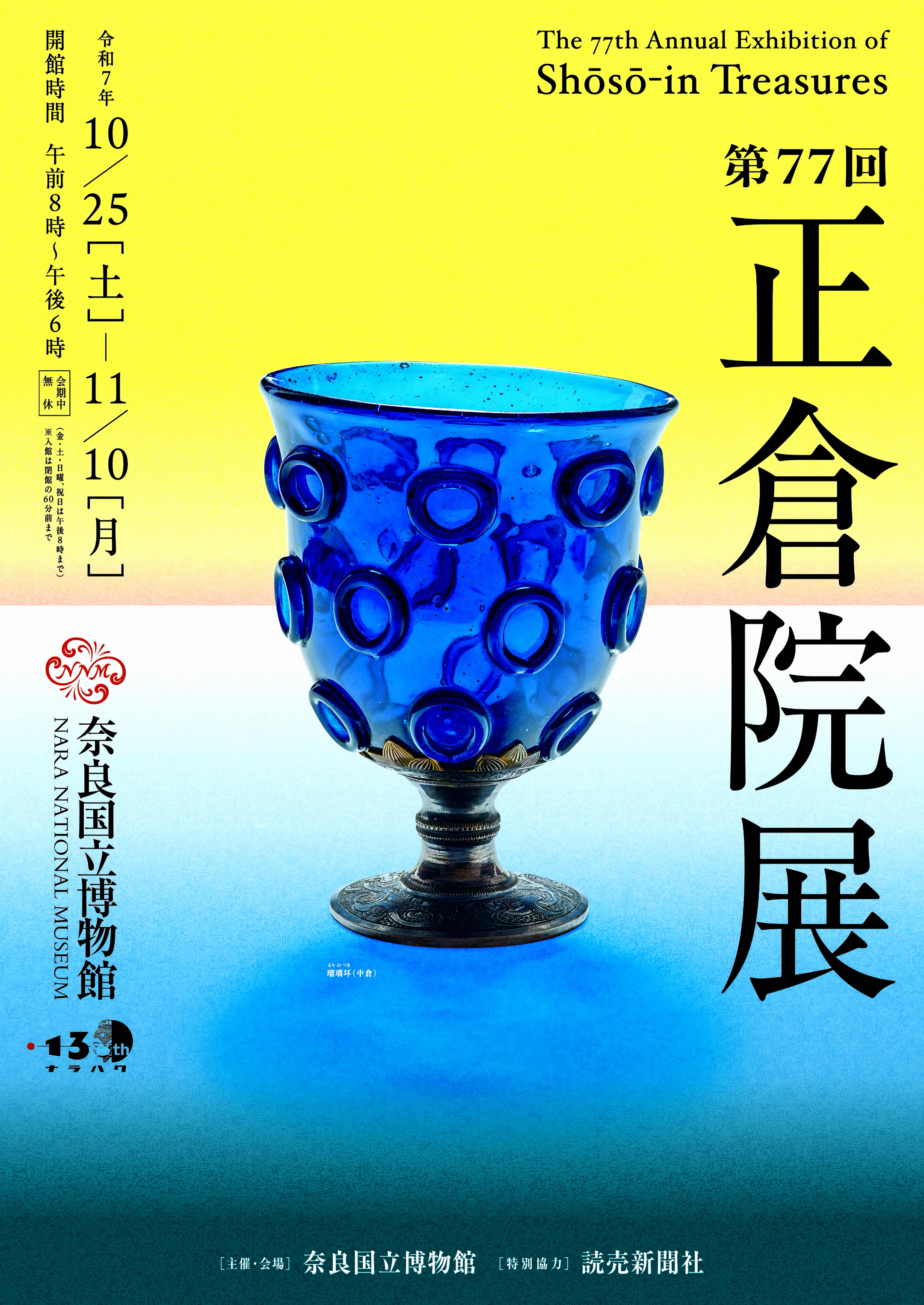 나라국립박물관 연례 추계 특별전인 정창원전正倉院展 올해 2025년 제77회 전시는 이 박물관 고지에 의하면 10월 25일 개막해 11월 10일까지 개최한다.
