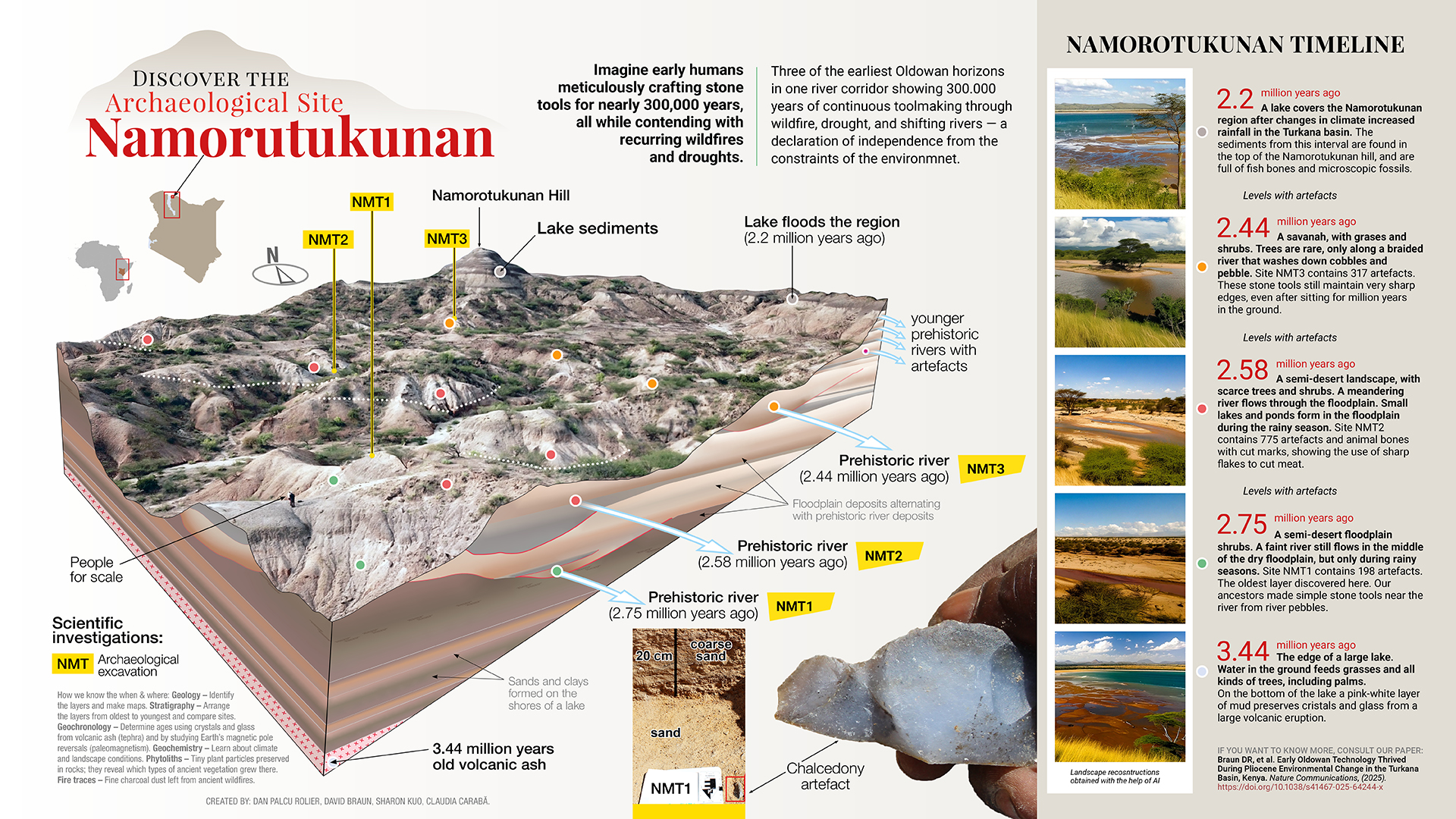 국제 다기관 연구팀은 나모로투쿠난 유적Namorotukunan Site에서 지금까지 발견된 가장 오래되고 긴 초기 올도완 석기 유물 Oldowan stone tools을 발견했는데, 그 시기는 약 275만 년에서 244만 년 전으로 거슬러 올라간다.