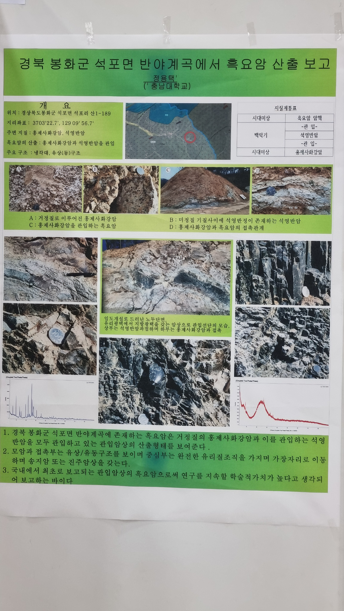 흑요암..그것도 관입암상으로.의외로 흑요암이 관입하였다고 하니 이해 못하는 분이 많으시더라. 국내 처음으로 기재하는 관입암상 흑요암