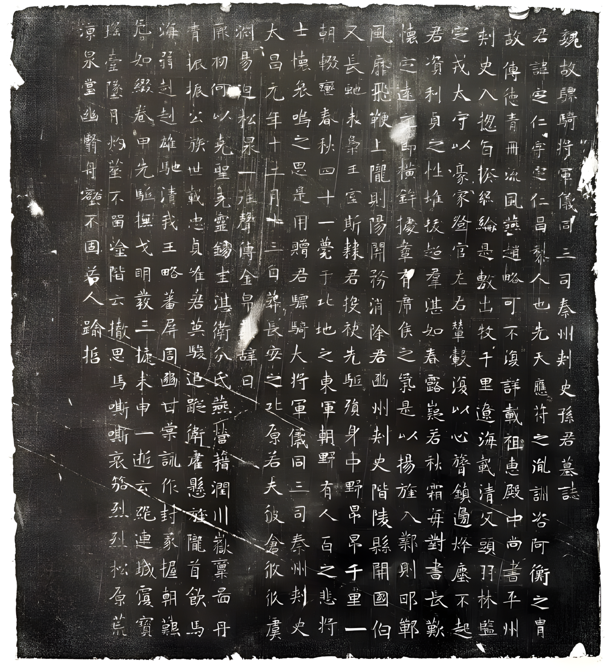 청석질青石质 묘지墓志에 따르면, 묘주인 손정인은 생전에 빈주 자사를 역임하고 죽은 다음에는 진주자사秦州刺史가 추증된다.