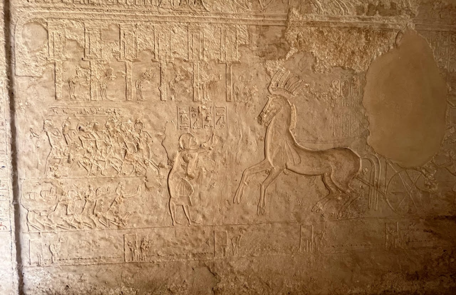 마후 무덤에서 발견된 또 다른 이미지에서는 검문소였을 것으로 추정되는 작은 구조물들을 보초병들이 지키고 있다.