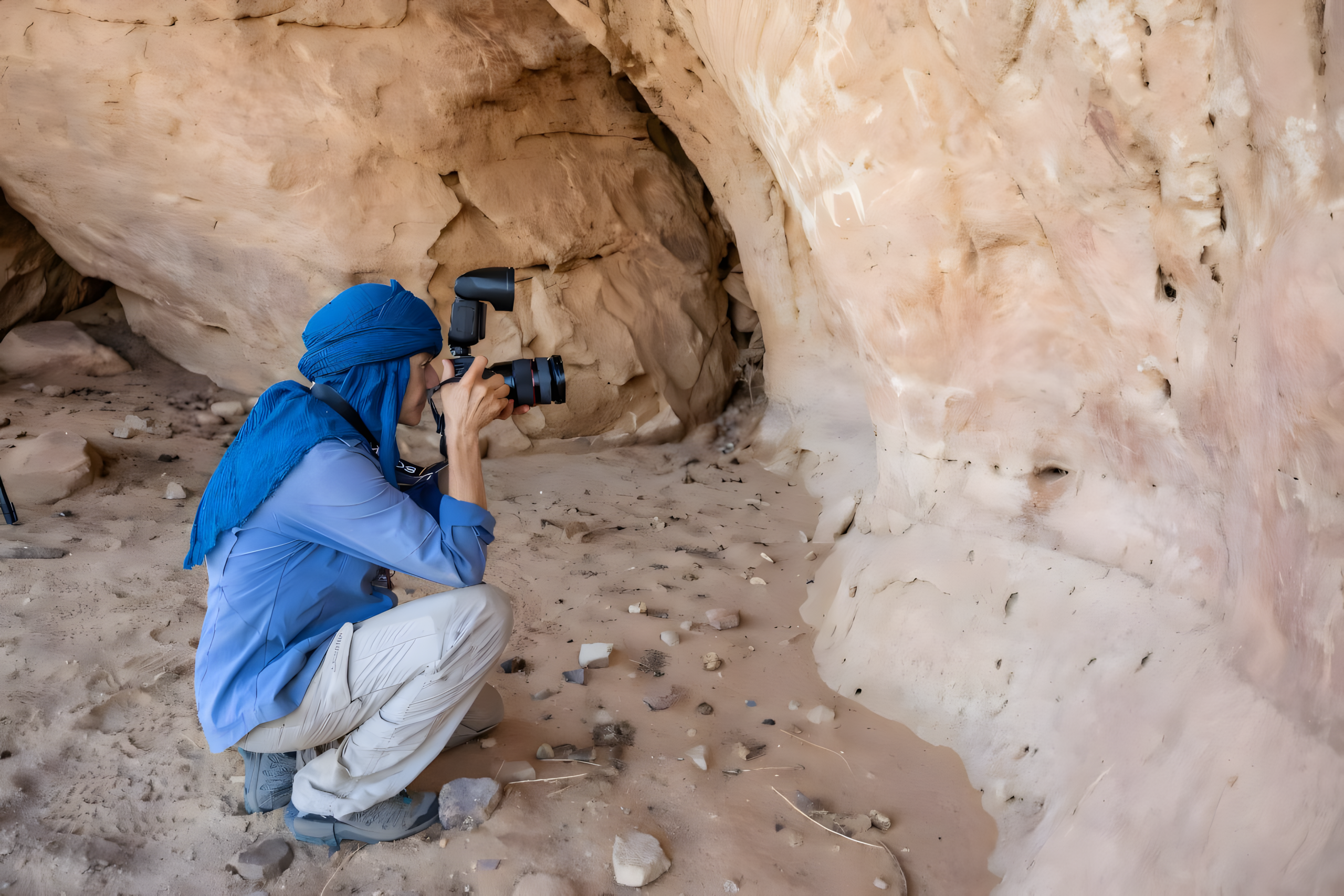 엔네디 서부Ennedi West 지방 가오라 할라가나Gaora Hallagana 유적 가장 큰 바위그늘rock shelter 안에서 솔과 트라우얼trowel을 든 채 무릎을 꿇은 35세 지메트 게모나Djimet Guemona는 모래 층을 하나하나 꼼꼼하게 제거했다.