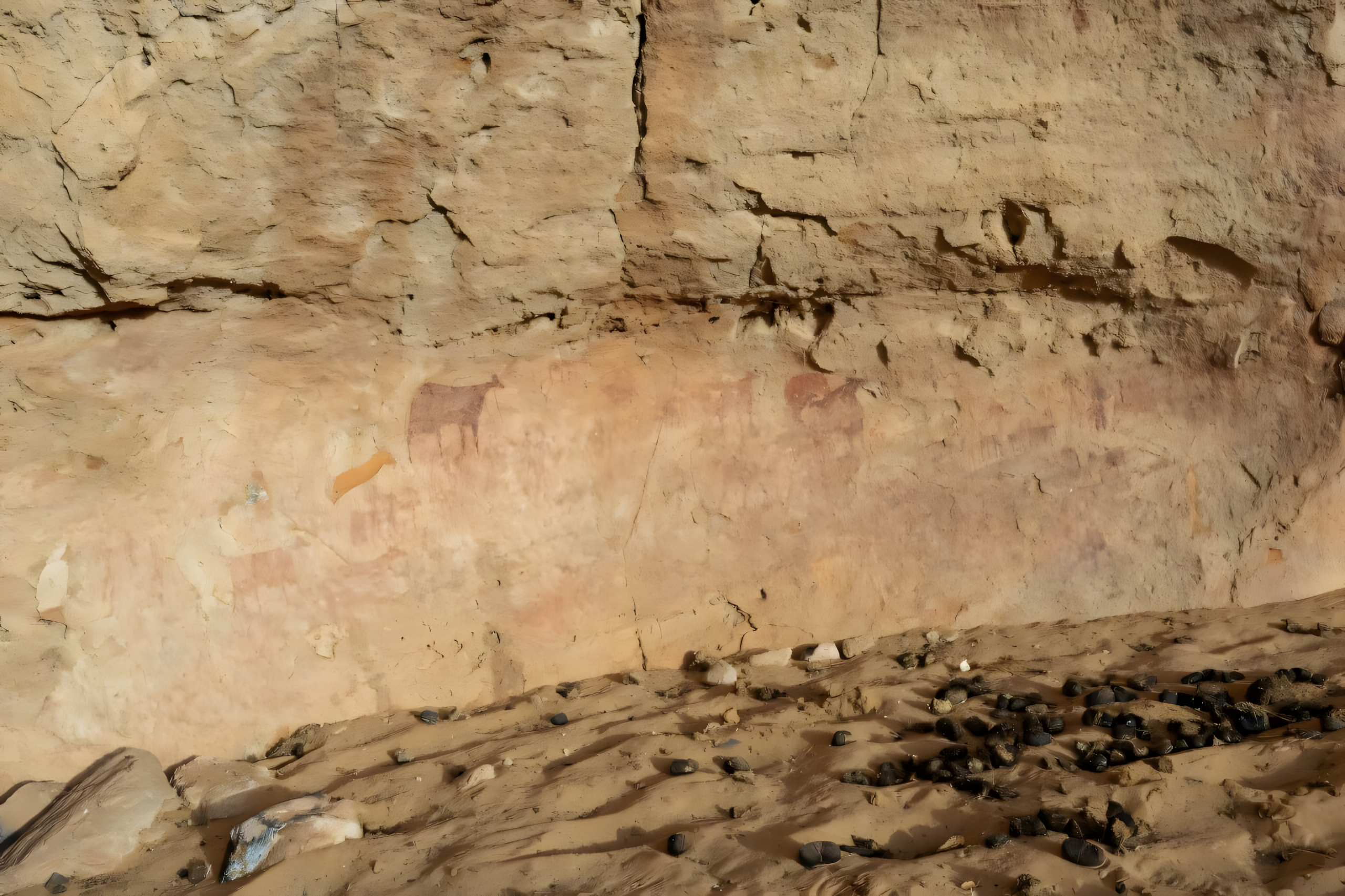 습윤 시대의 추가적인 증거로는 다른 바위 거주지에서 발견된 하마, 기린, 코끼리 묘사가 있다.