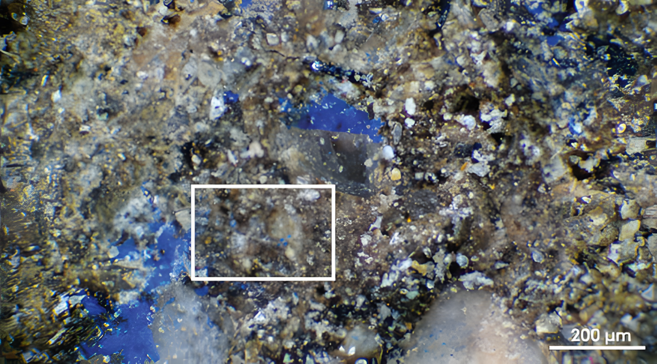 그러나 첨단 과학 분석 결과, 가공 시 선명한 청색을 띠는 탄산구리 광물인 남동석을 함유한 선명한 청색 잔류물이 발견되었다.