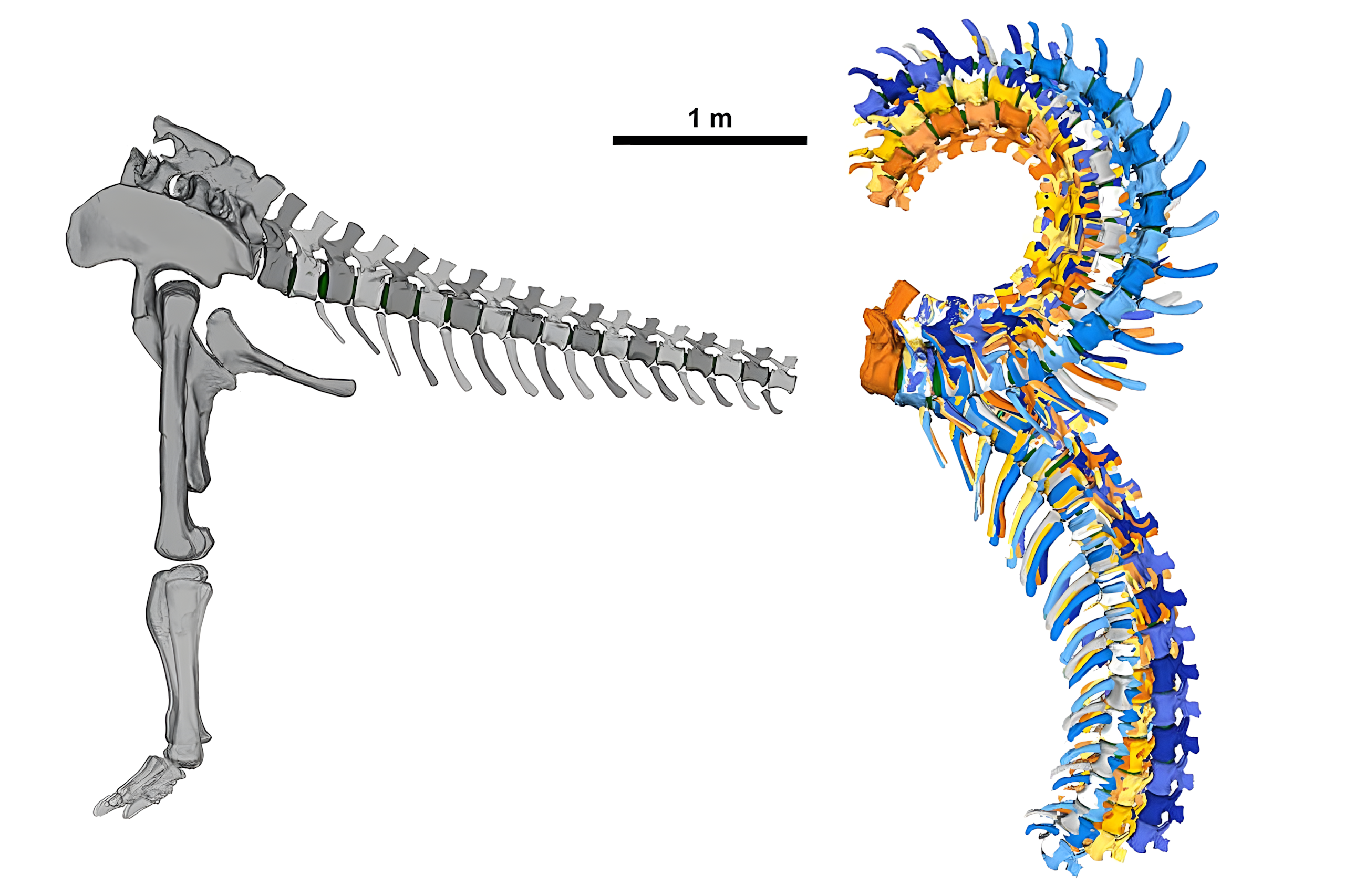 특히 꼬리뼈 아래쪽에 있는 뼈 구조인 헤말 아치hemal arch에 주목했는데, 이는 이전 연구에서는 간과된 부분이다.