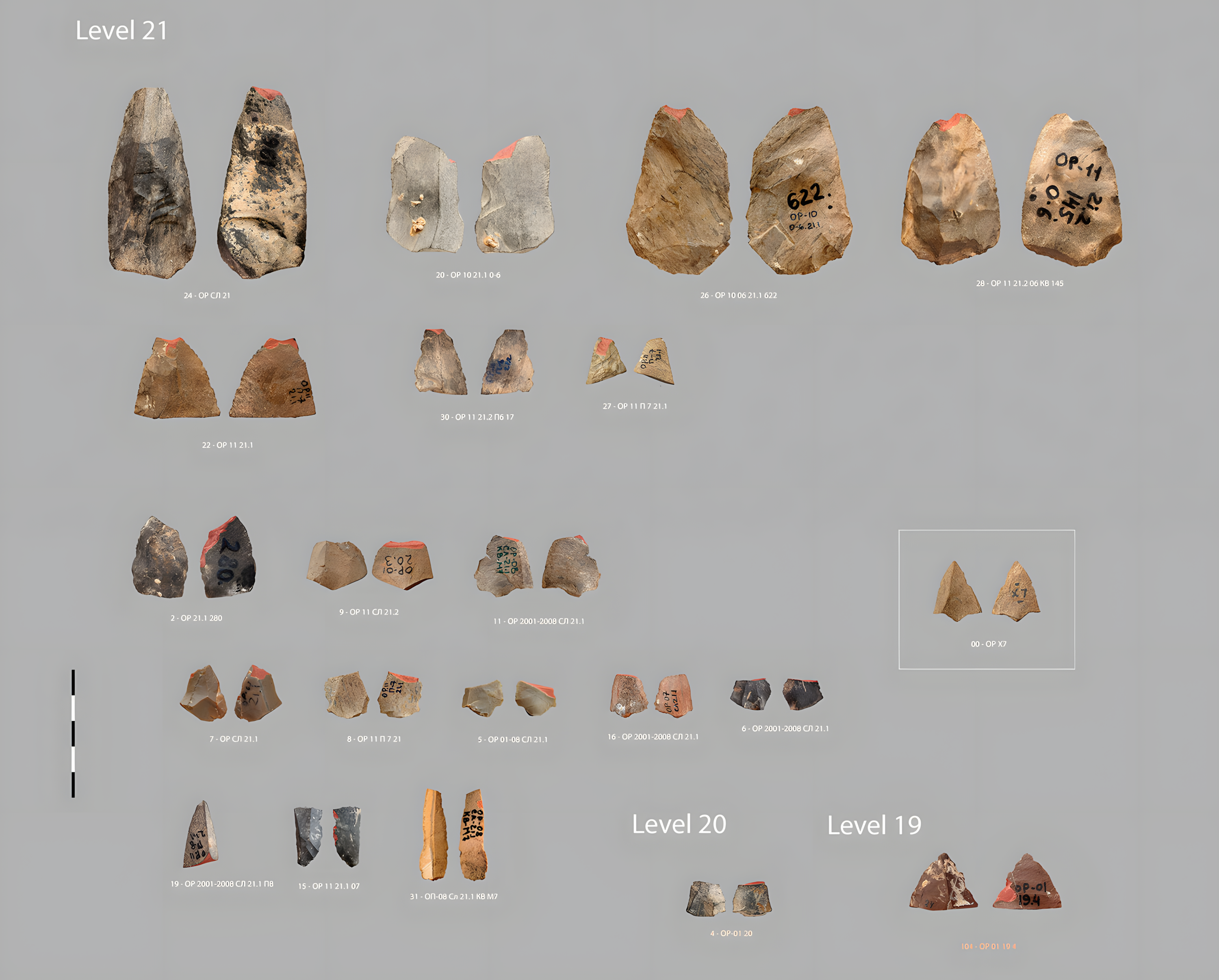 연구팀은 이 중 최소 20개가 투사체와 유사한 형태를 띠며, 이는 크게 대형 재가공 투사체large retouched points, 미세 투사체micropoints, 그리고 작은 투사체bladelets로 구분된다.