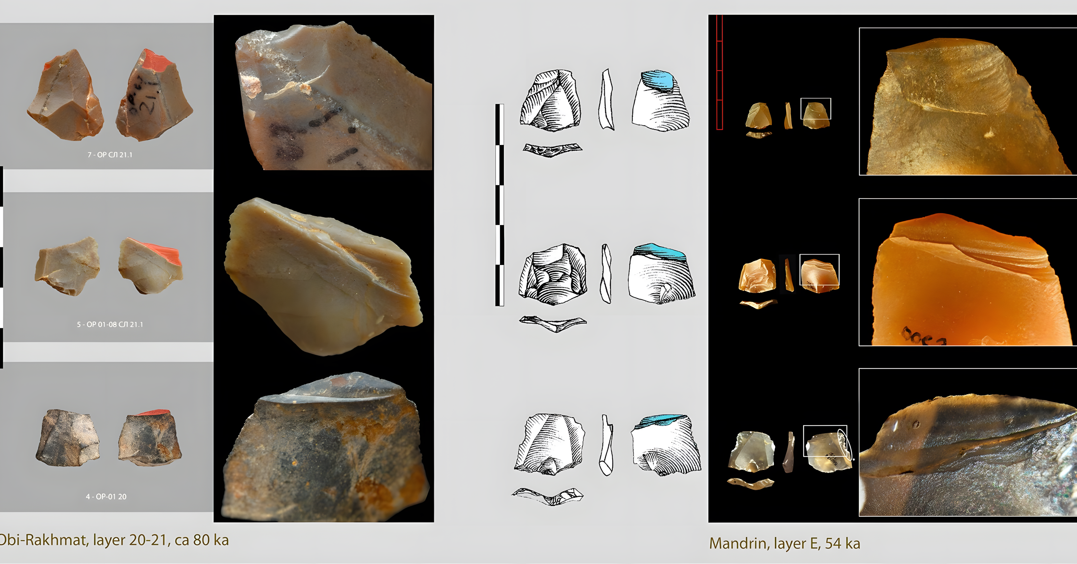 보르도 대학교와 노보시비르스크 고고학·민족학 연구소 연구팀이 동굴 퇴적물에서 4만 년에서 9만 년 전 수백 개 석기 조각을 발견했다.