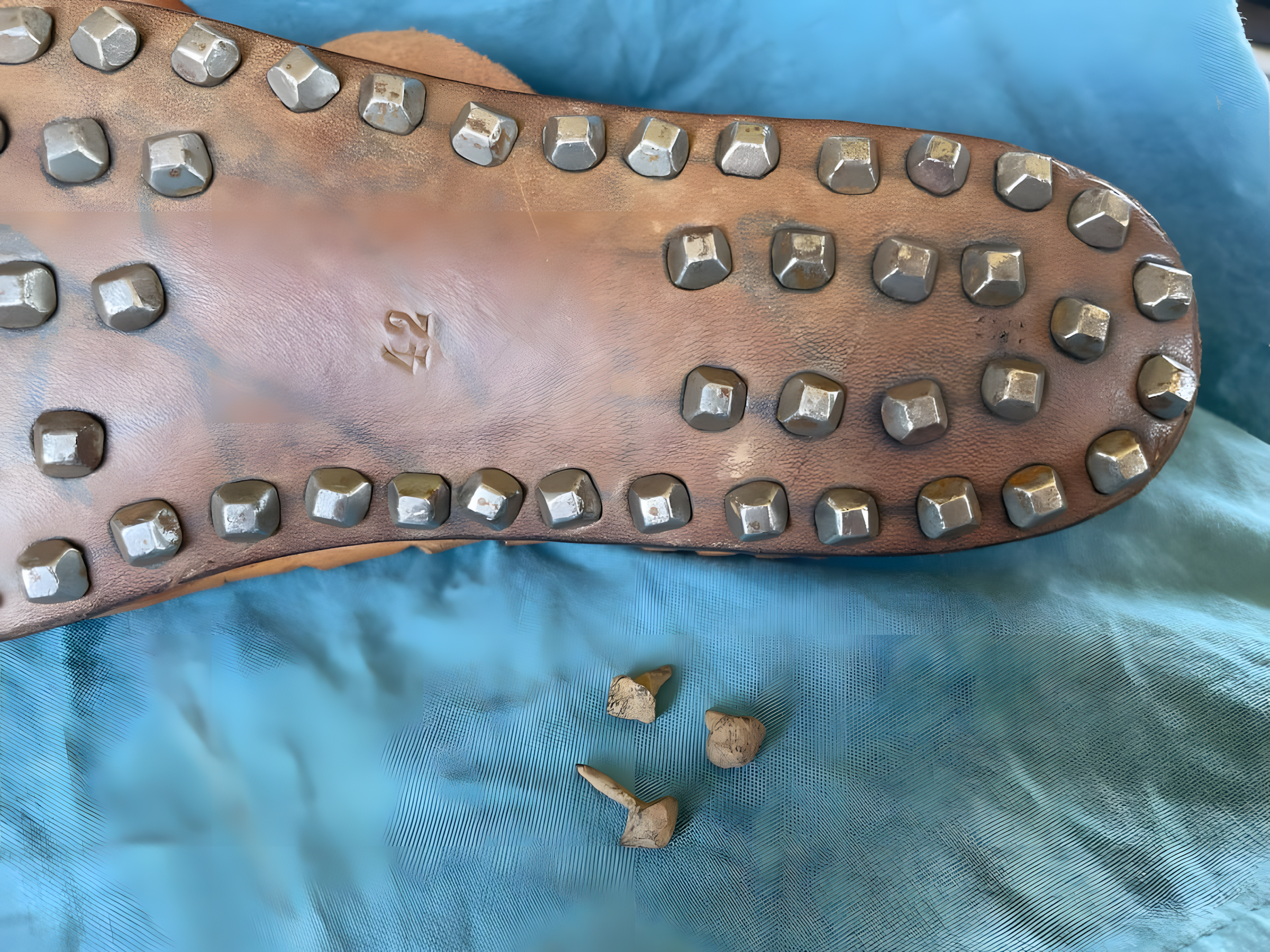 약 1.5cm 길이 이 유물들은 로마 군단병의 표준 신발에 마찰력, 내구성, 그리고 보호력을 제공하기 위해 칼리가에(caligae) 밑창에 박혀 있던 특징적인 못으로 의심의 여지 없이 확인되었다.