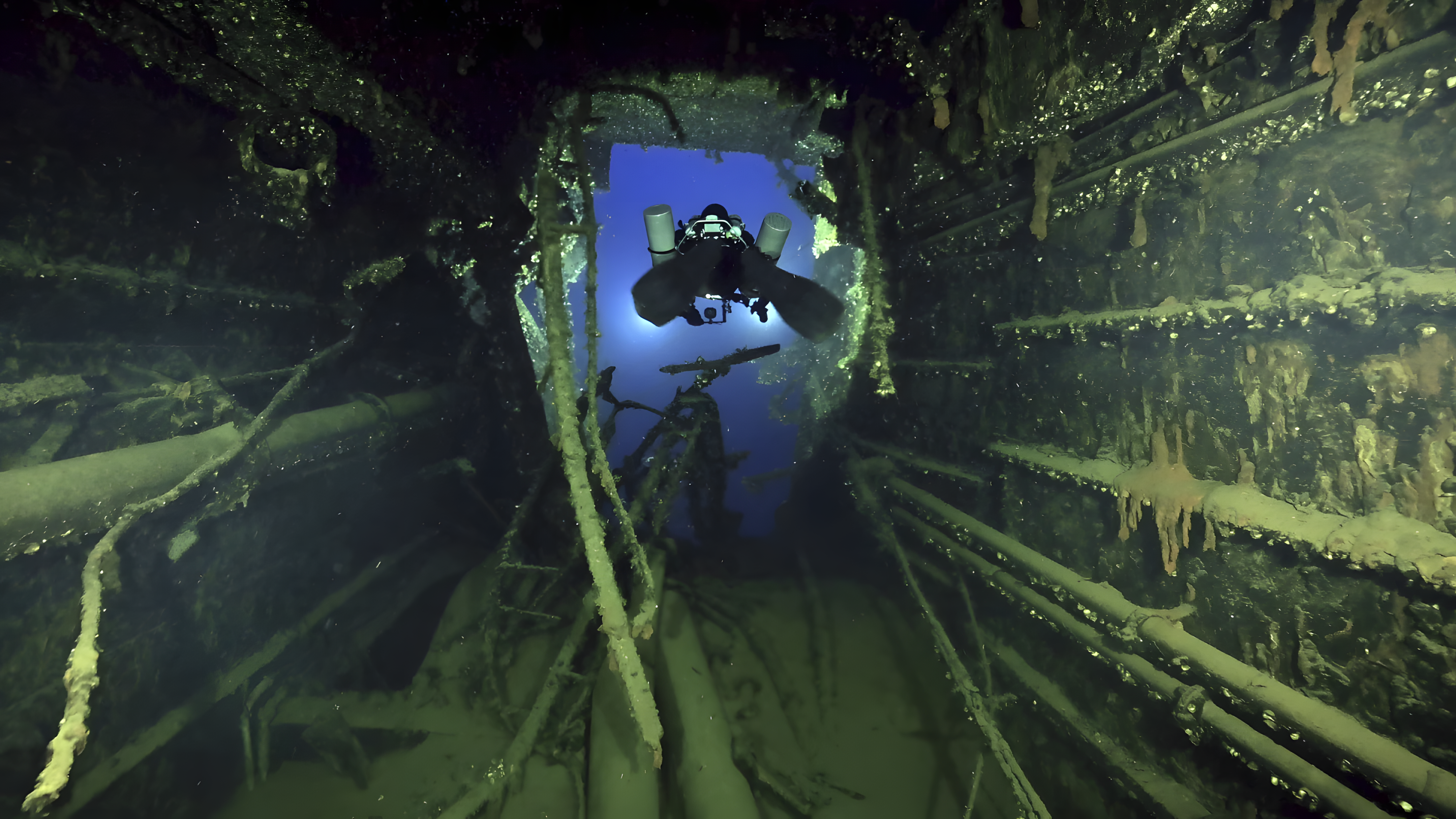 난파선은 수심 120m(약 400피트)에 위치하여 전문 다이버만 접근할 수 있다.