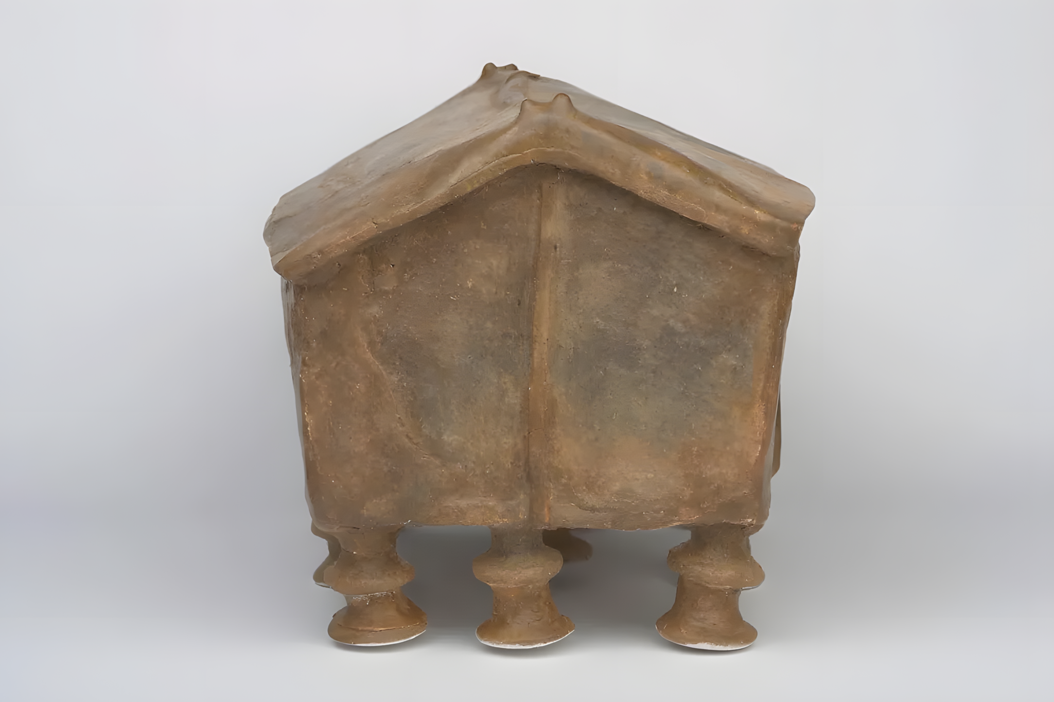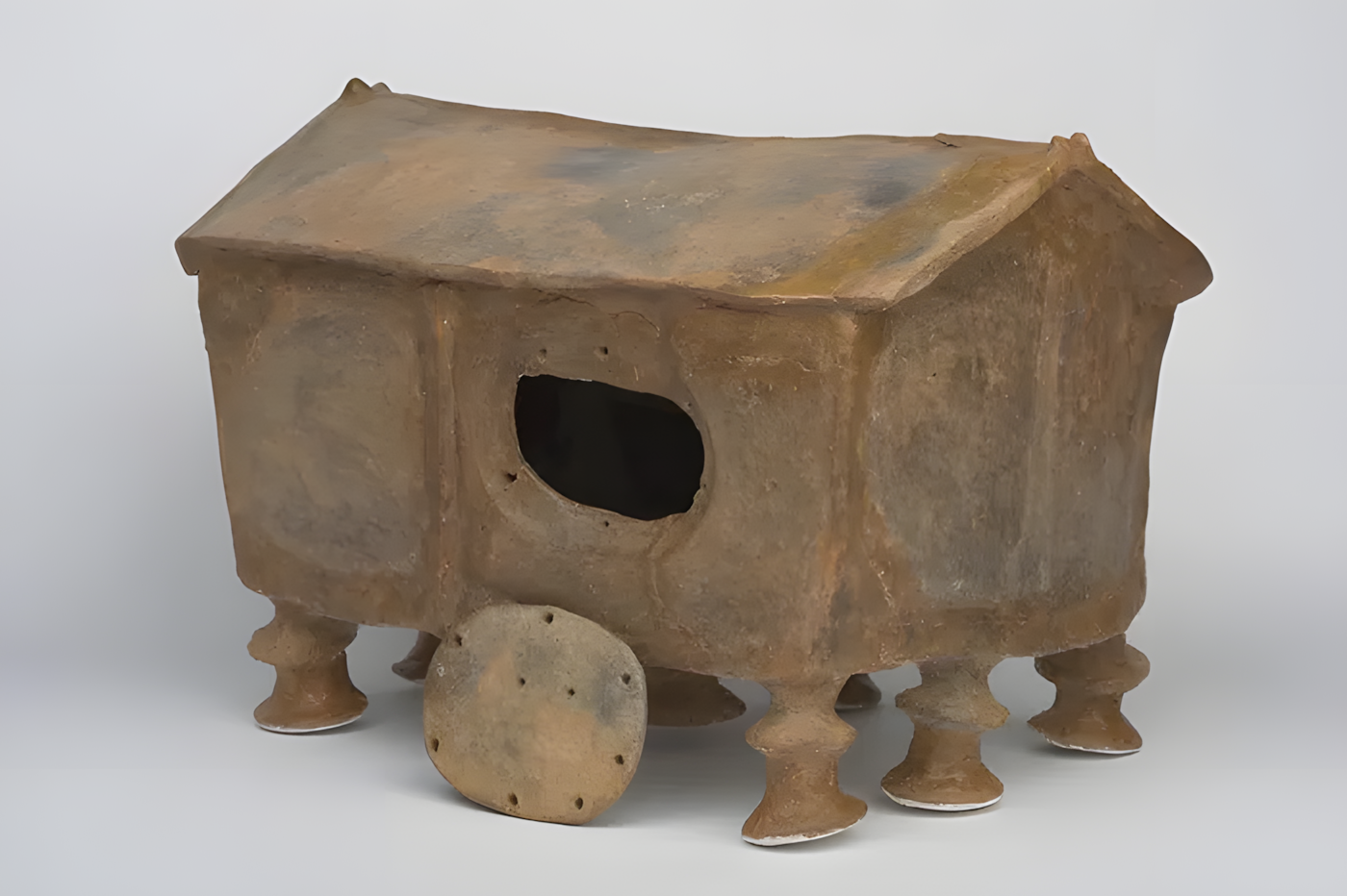 9개 다리와 둥근 문을 갖춘 집 모양을 본떠 설계한 이 독특한 직사각형 점토 용기는 기원전 7세기에서 기원전 3세기 사이에 번성한 포메라니아 문화Pomeranian culture의 화장 관습에 대한 흥미로운 통찰을 제공한다.