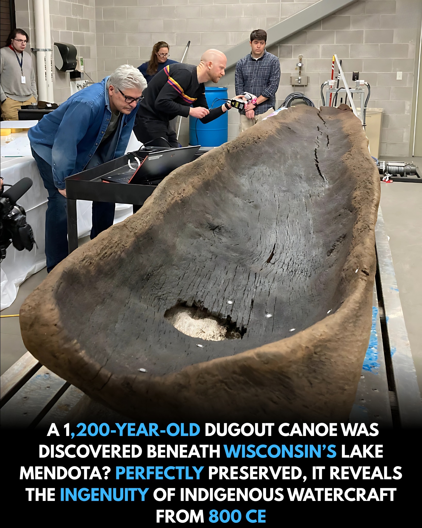 미국 위스콘신 주 멘도타 호수 Lake Mendota 깊은 곳에서 고고학도들이 1,200년 전 놀라운 보물, 통나무 카누를 발견했다.