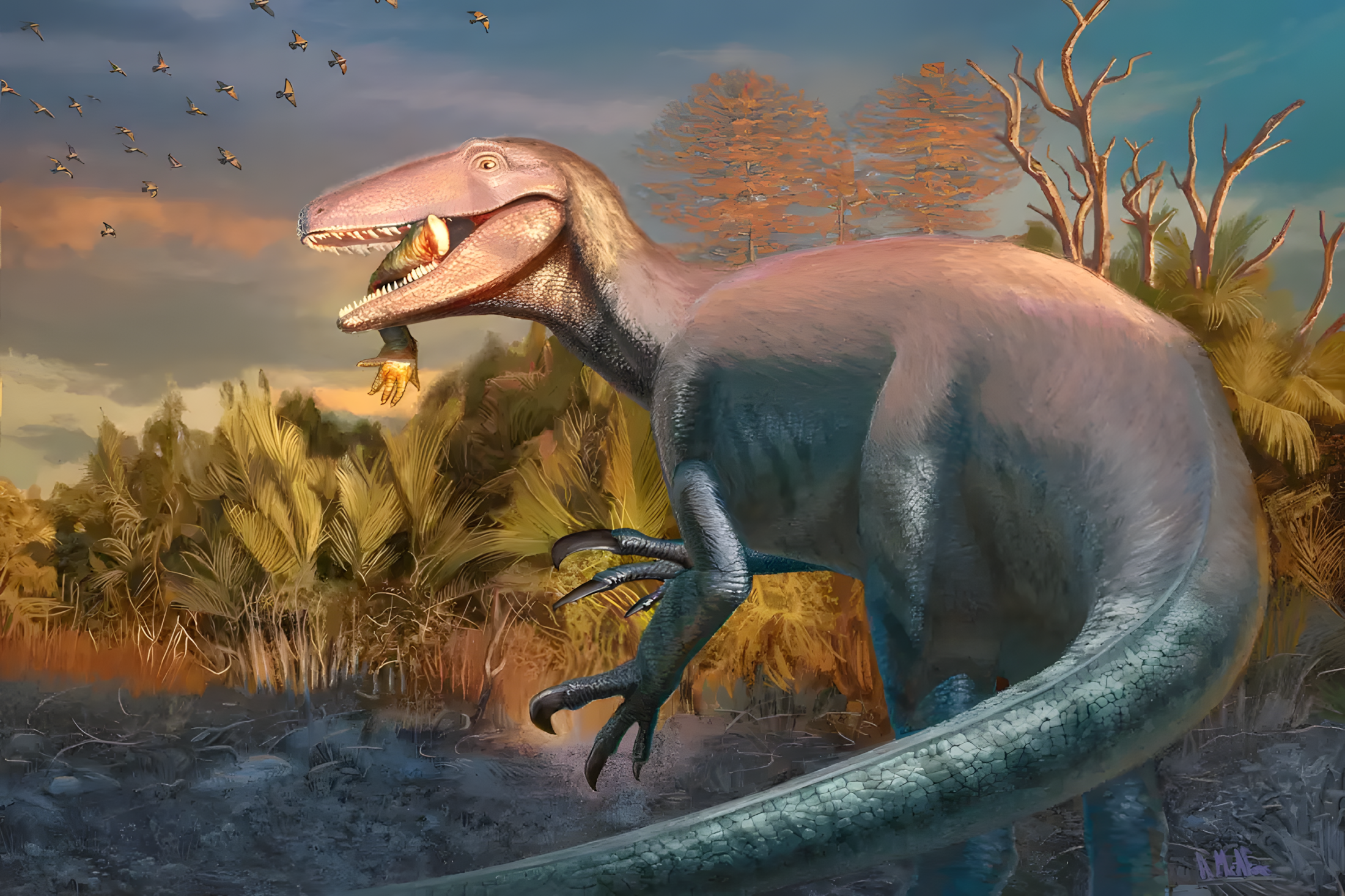 길이 2미터에 달한 이 공룡은 약 7500만 년에서 7100만 년 전, 광활한 모래 언덕과 간헐적으로 나타나는 호수에서 사냥을 하며 산 가장 위험한 생물 중 하나였을 것이다.