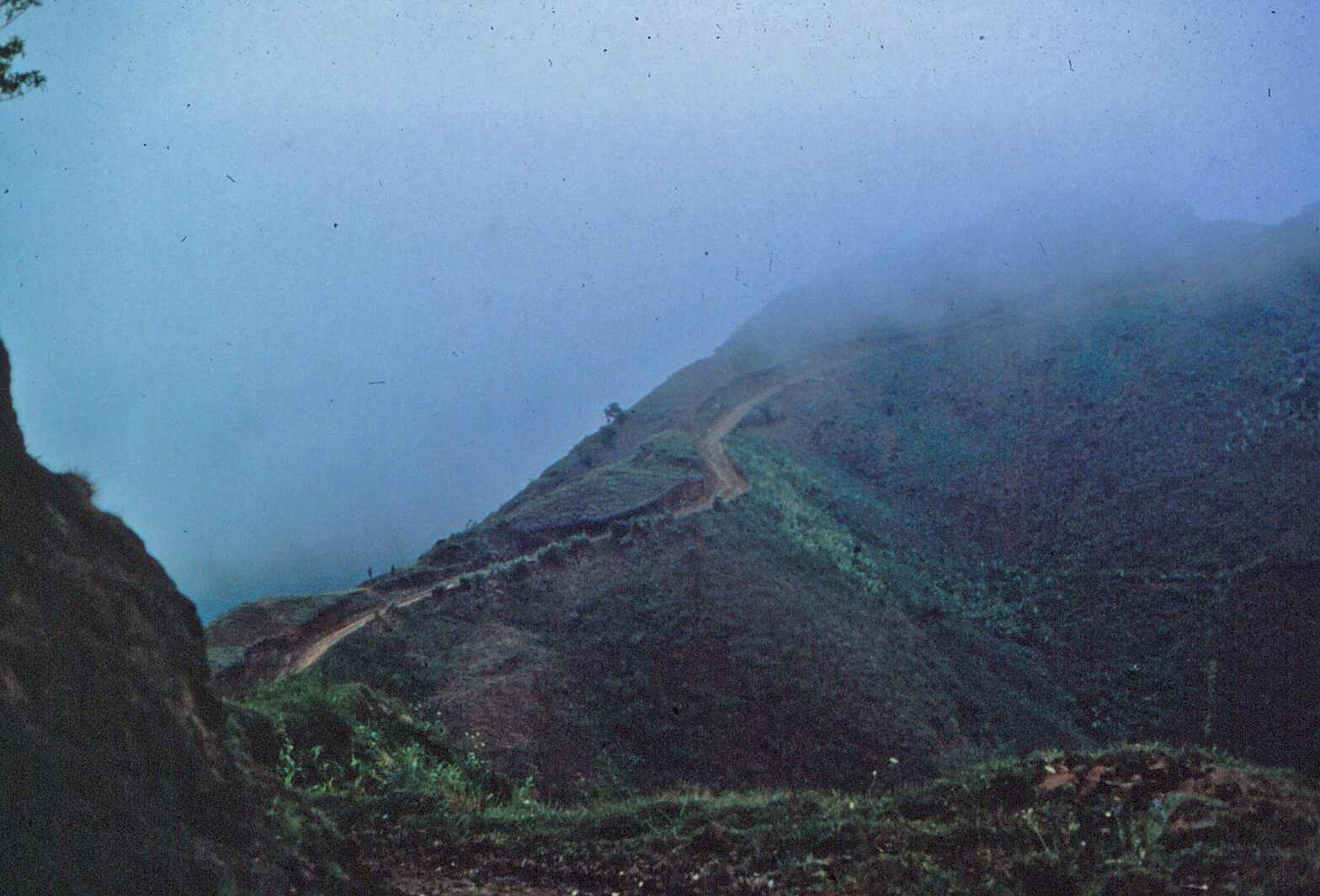 고도가 더 높아지면 경사면은 습한 열대우림과 자갈밭이 번갈아 나타나는데, 자갈밭에는 빽빽하게 얽힌 양치류와 가시덤불이 수 미터 두께로 우거져 뚫을 수 없는 벽을 이룬다.