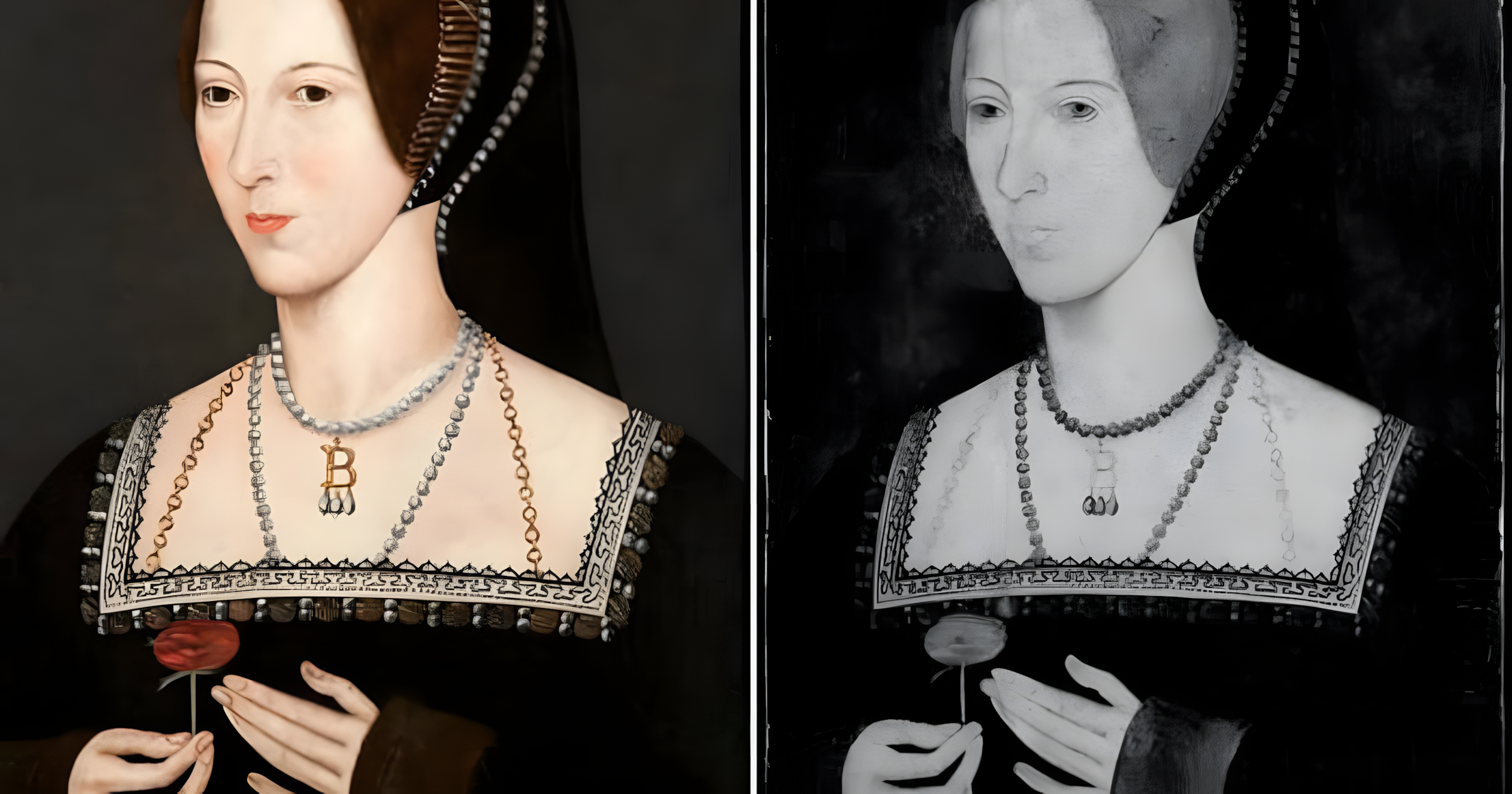 이것이 바로 현재 보는 초상(왼쪽)과 그 밑그림(오른쪽) 대비다.