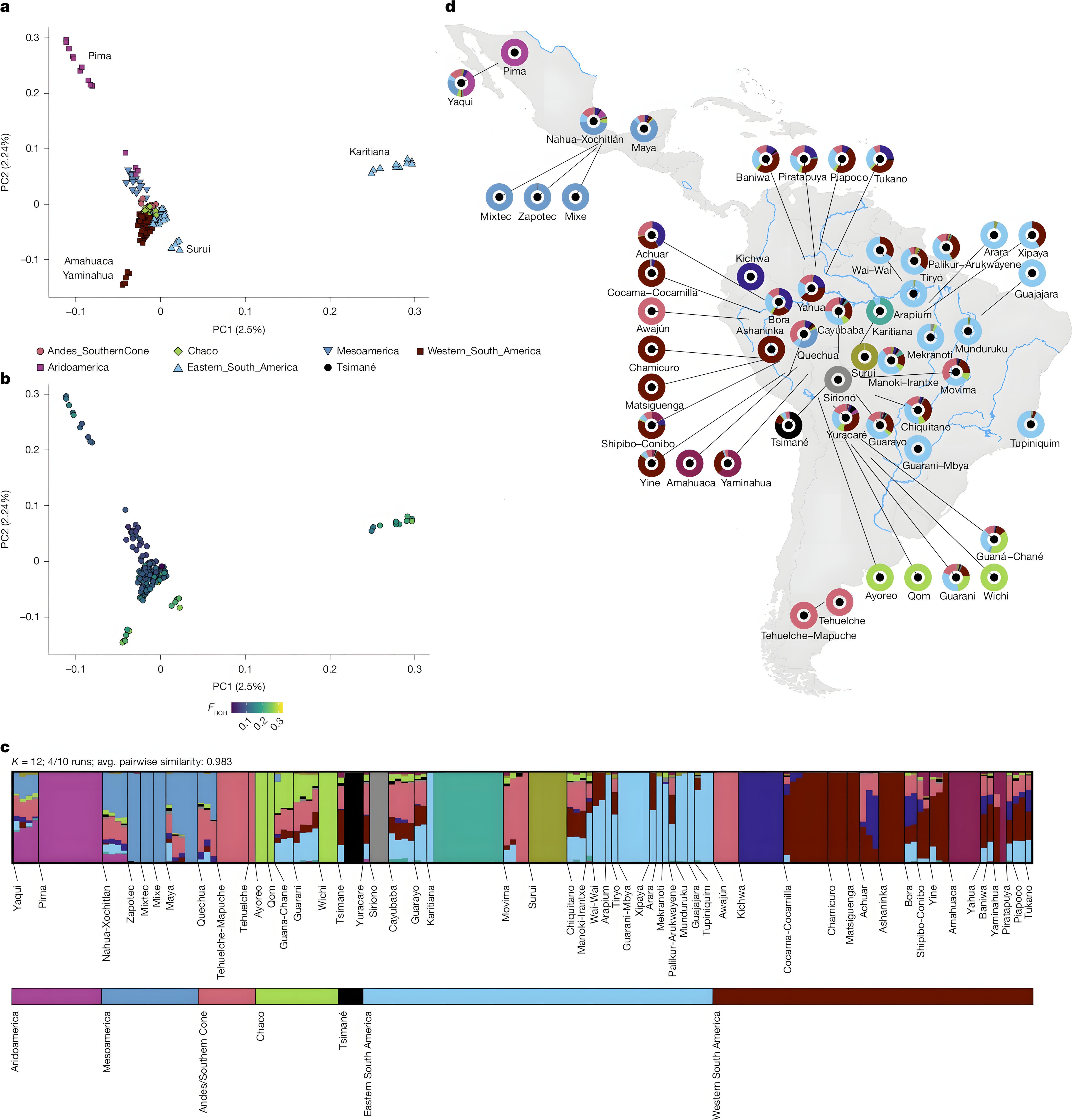 Araújo Castro e Silva, M., Nunes, K., Ribeiro, M.R., Passareli-Araujo, H., Barbosa Lemes, R., Kimura, L., Sacuena, P., Amorim, C.E.G., Bortolini, M.C., Mill, J.G., Guerreiro, J.F., Barbieri, C., Hernández-Zaragoza, D.I., Walter, A., Chowdhury, T.N., Herrera-Macías, D., Lara-Riegos, J.C., Del Castillo-Chávez, O., Zurita, C., Tito-Álvarez, A.M., Vásquez-Domínguez, E., Moo-Mezeta, M.E., Torres-Romero, J.C., Aguilar-Campos, A., Serrano-Osuna, R., Parolín, M.L., Bravi, C.M., Ramallo, V., Baillet, G., Revollo, S., Sandoval, J.R., Fujita, R., Barquera, R., Santos, F.R., Comas, D., & Hünemeier, T. (2026). The evolutionary history and unique genetic diversity of Indigenous Americans. Nature. https://doi.org/10.1038/s41586-026-10406-w