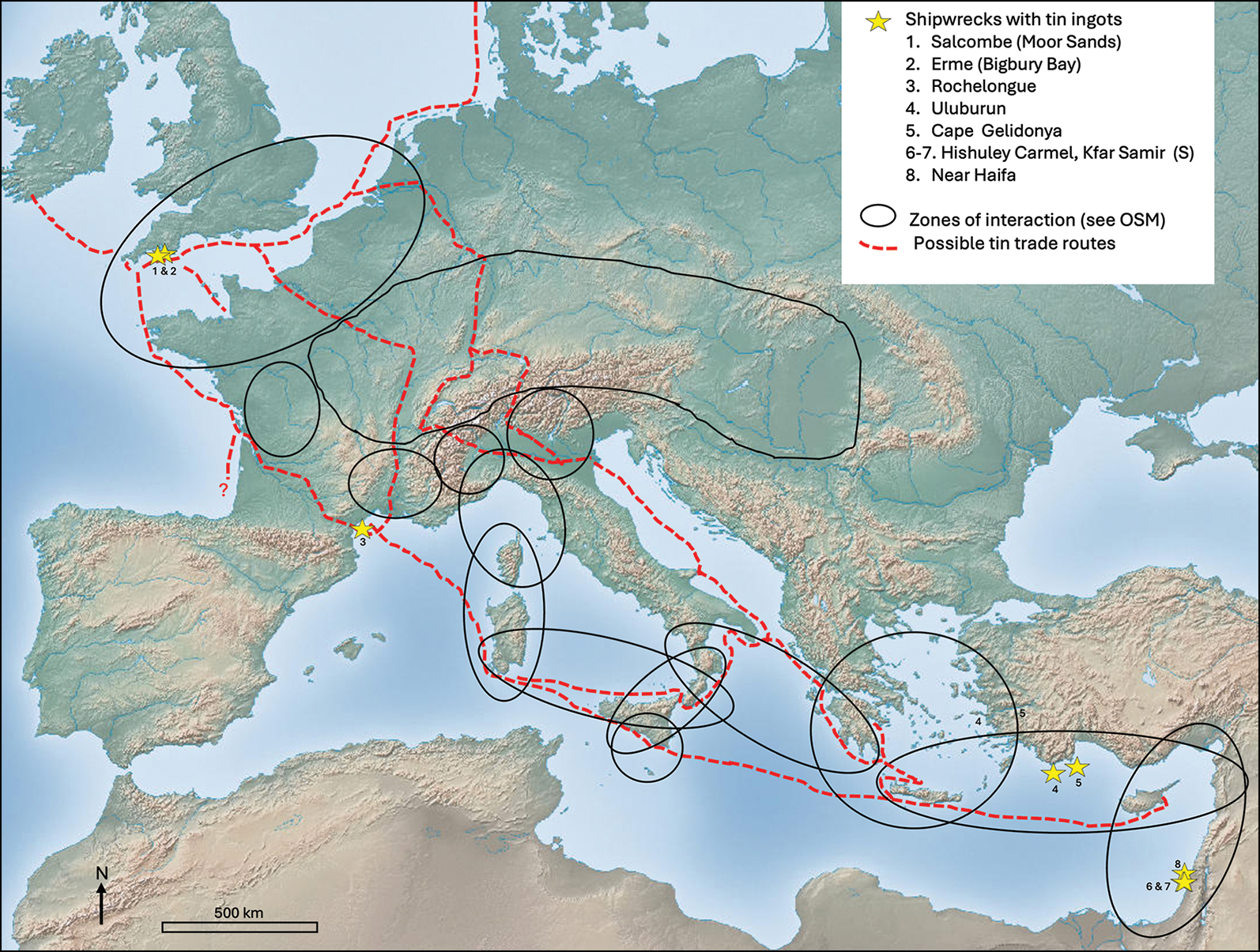연구진은 프랑스 남부 해안에서 발견된 기원전 600년 무렵의 로슐롱그Rochelongue 난파선에서 출토된 주석이 영국 남서부에서 온 것임을 밝혀냈다.