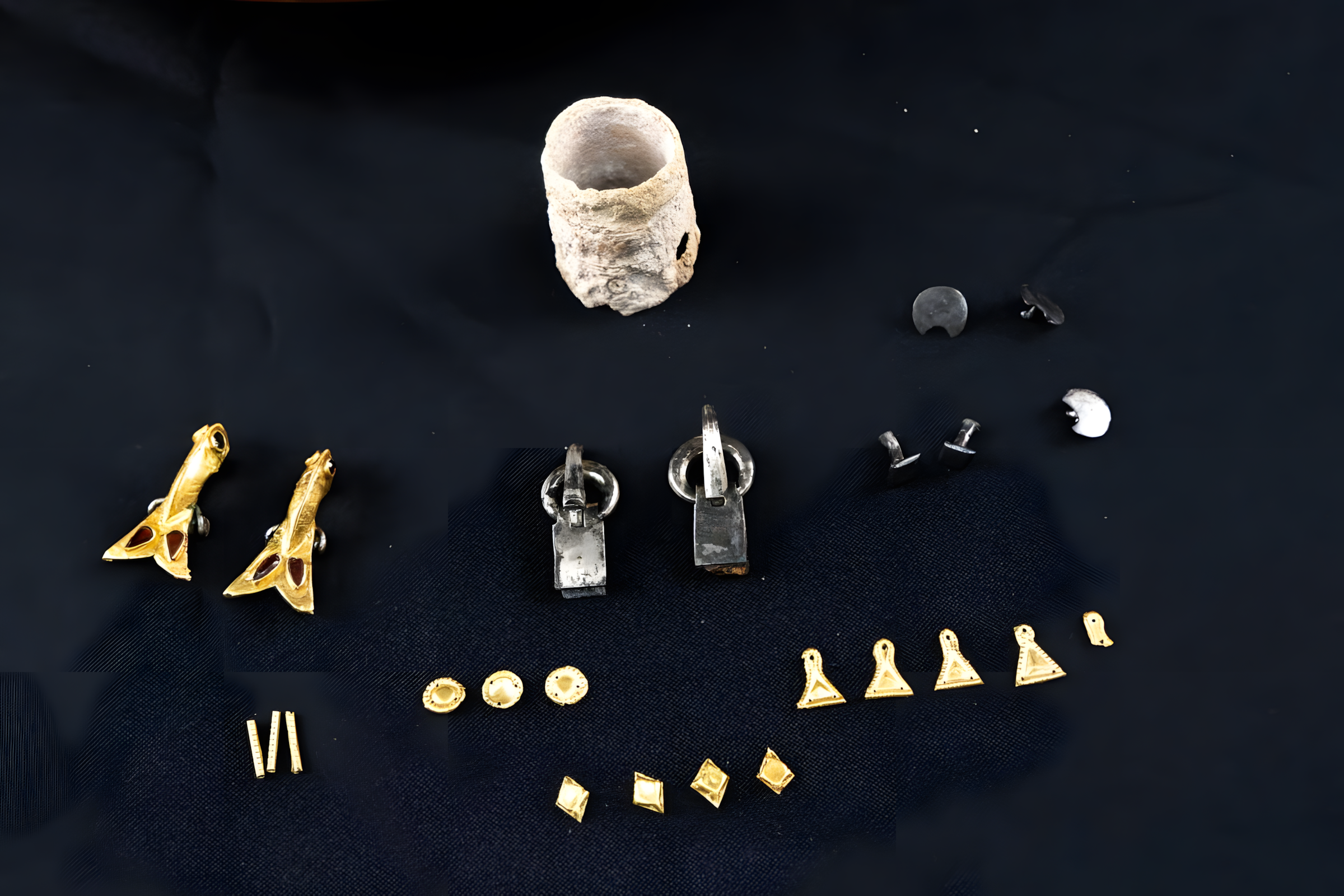 발굴된 유물에는 브로치, 금 귀걸이, 벨트 장식(리벳rivets), 신발 버클shoe buckles, 그리고 드레스 네크라인neckline of a dress을 장식했을 것으로 추정되는 금박 아플리케 장식gold leaf appliqué decorations이 포함된다.
