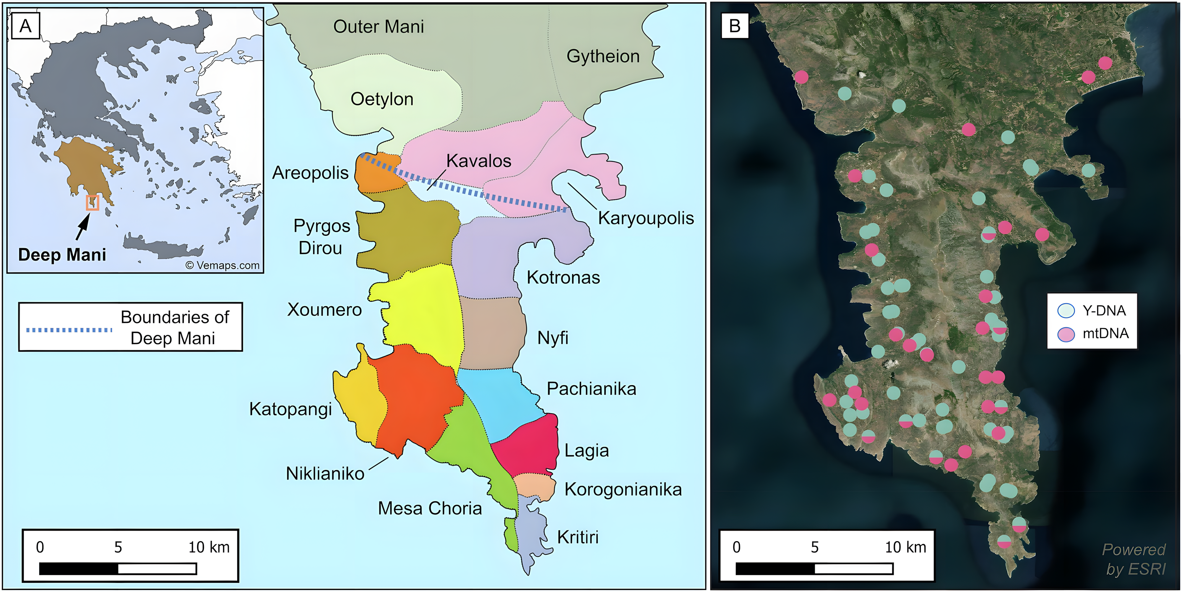 새로운 유전자 연구에 따르면, 그리스 본토에서 가장 외딴 지역 중 하나인 딥 마니Deep Mani[앞 첨부 지도 참조]에 거주하는 사람들은 천년이 넘는 고립으로 형성된, 유럽에서 가장 유전적으로 독특한 인구 집단 중 하나인 것으로 나타났다.
