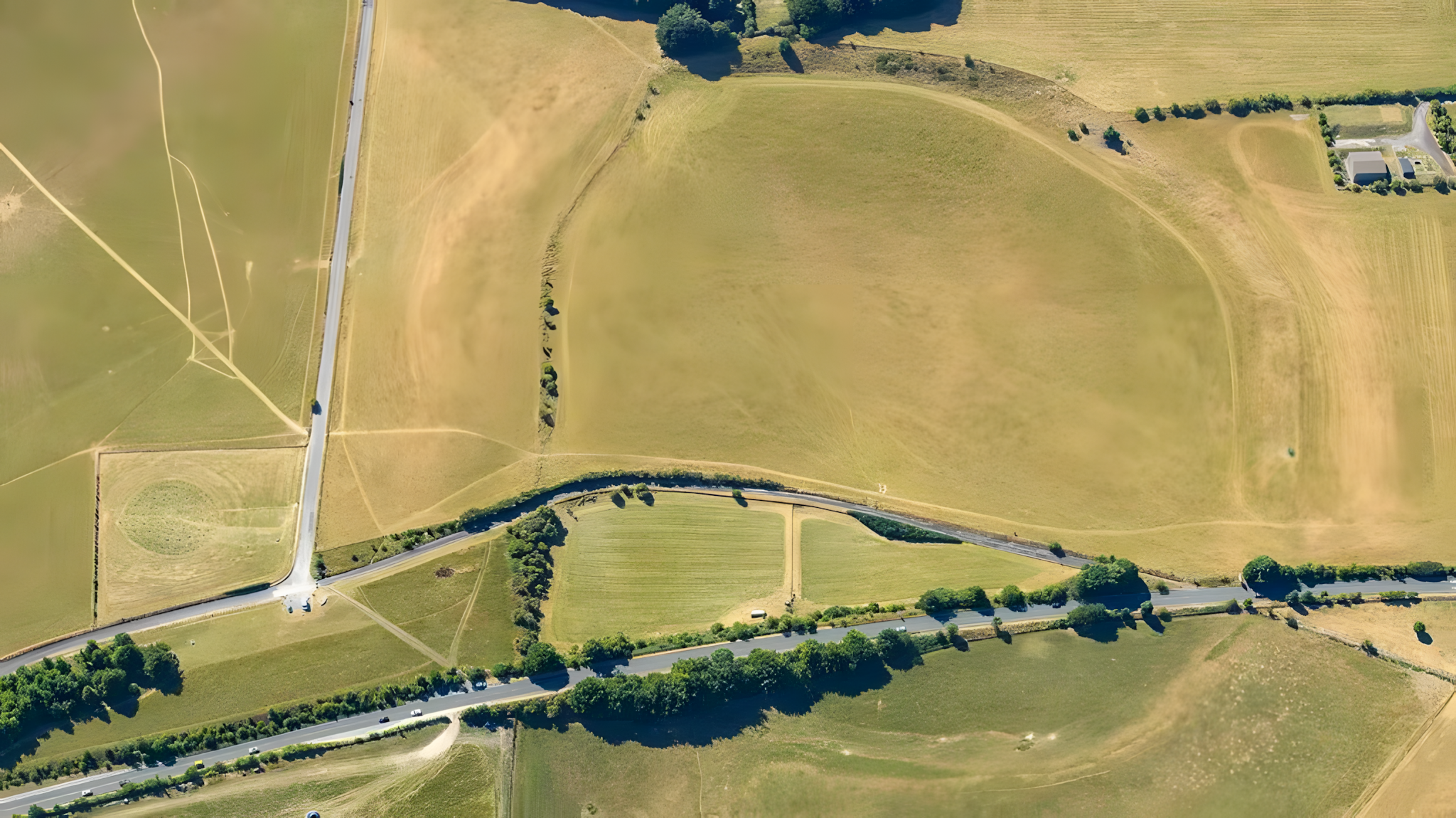 거대한 인공 구덩이들이 한때 거대한 헨지 울타리를 둘러싼 거대한 순환 구조를 이루고 있었다.