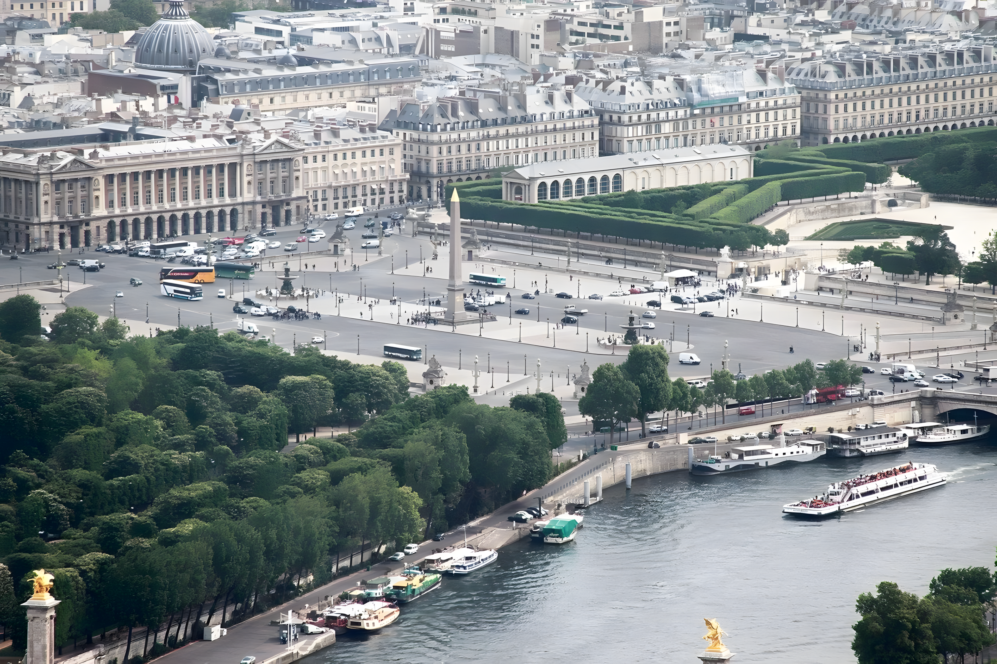 한때 강(현재 센 강)을 마주 보고 있던 오벨리스크 측면은 매우 조심스럽게 제작되어 특정 각도에서만 비문을 읽을 수 있었는데, 그중 하나는 45도 각도에서도 볼 수 있었다.