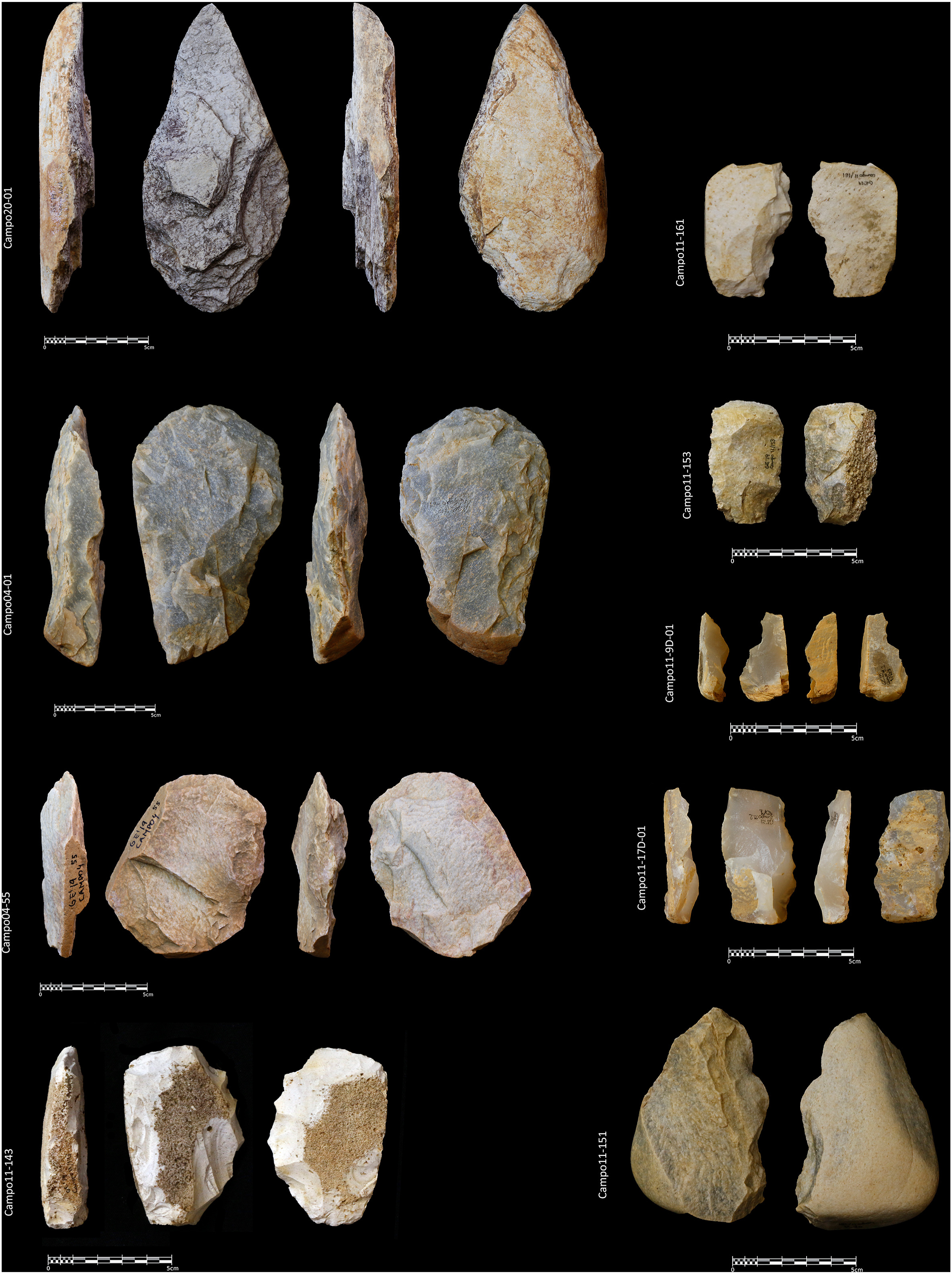 418점 유물에는 양면석기bifacial points, 르발루아 몸돌Levallois cores, 그리고 내구성이 뛰어난 석기가 포함된다.