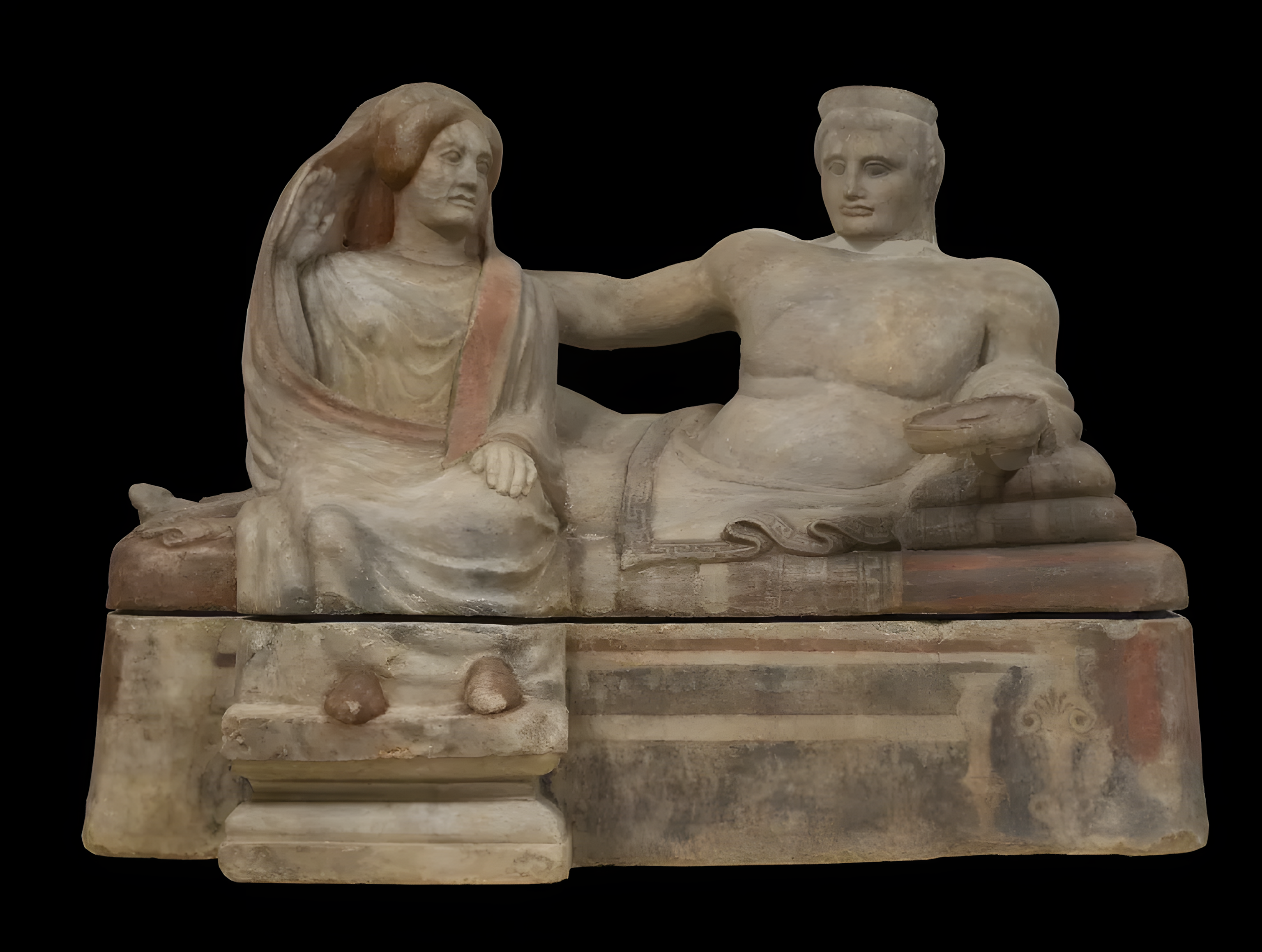 동시대 그리스 사회와는 달리, 에트루리아 여성들은 연회에 참석하고, 재산을 소유했으며, 공공 미술과 장례 미술에서 남편과 함께 묘사되었다.