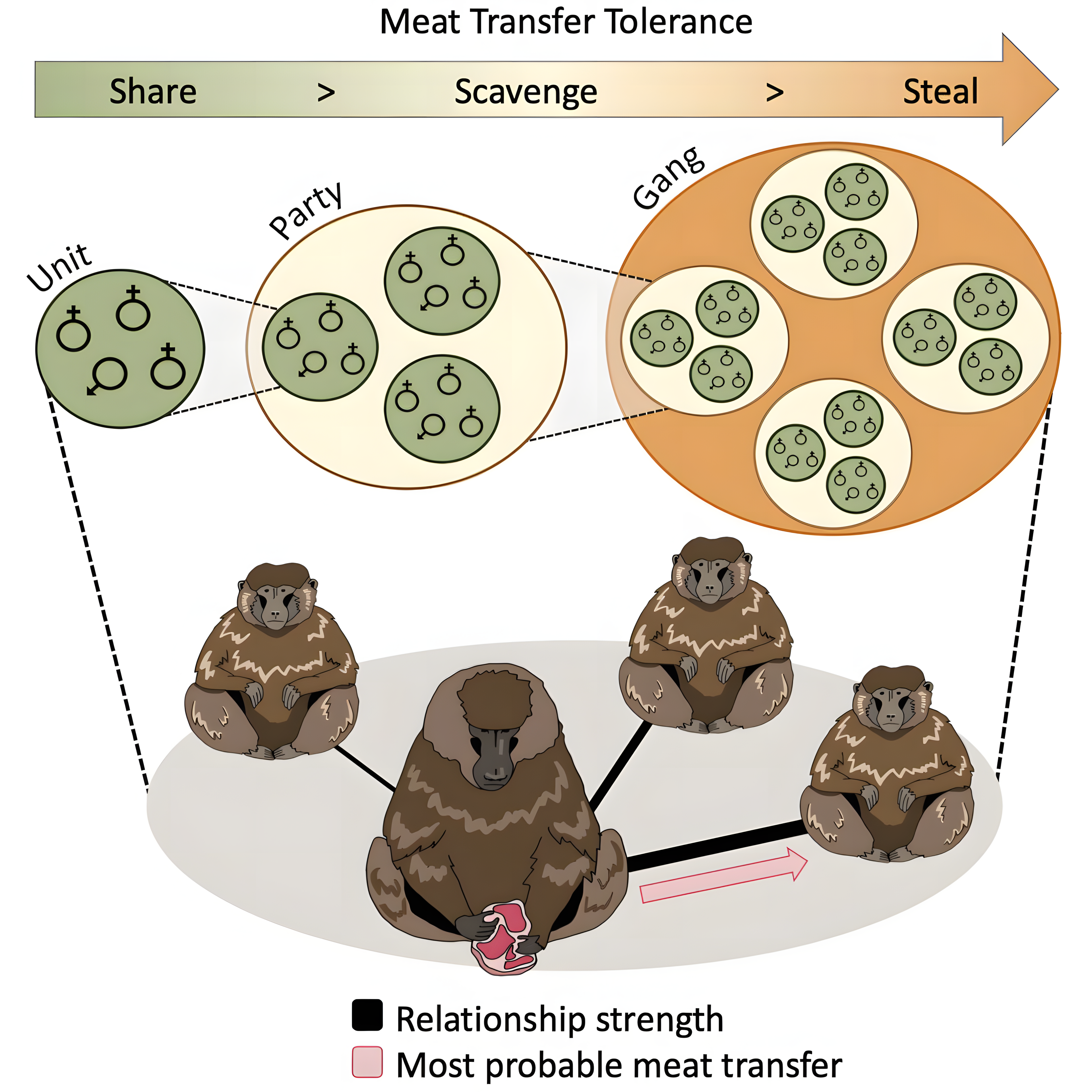 More information: William J. O'Hearn et al, Meat transfer patterns reflect the multi-level social system of Guinea baboons, iScience (2025). DOI: 10.1016/j.isci.2025.113619