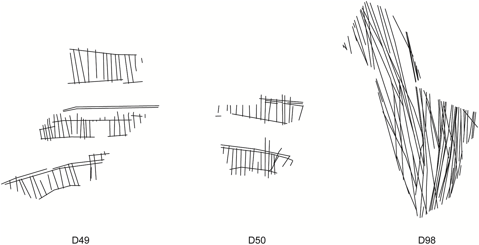 분석 결과, 80% 이상의 형상에서 90°에 가까운 각도의 반복 사용과 평행선들의 군집 등 일관된 공간적 규칙성이 나타났다.