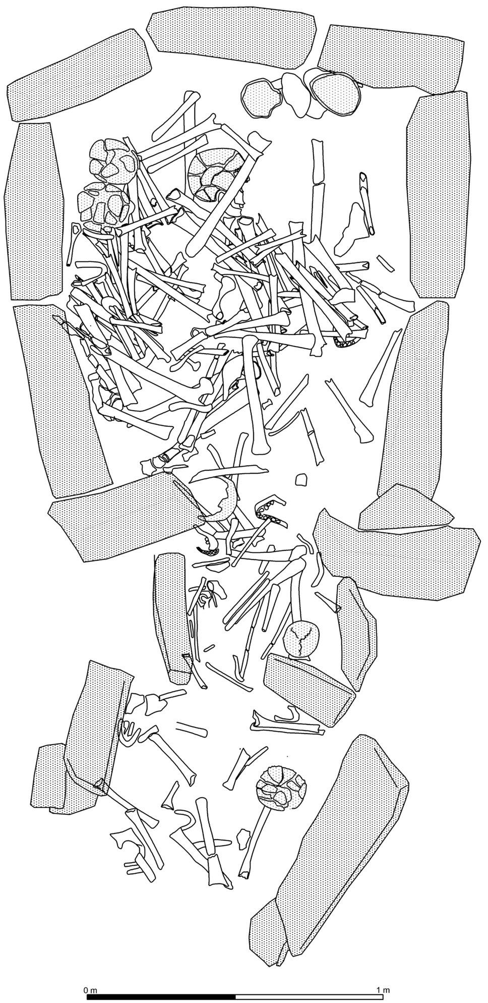 이 무덤들에서는 5,600년에서 4,100년 전 사이에 매장된 사람 유골 조각 57,000점 이상이 출토되었다.