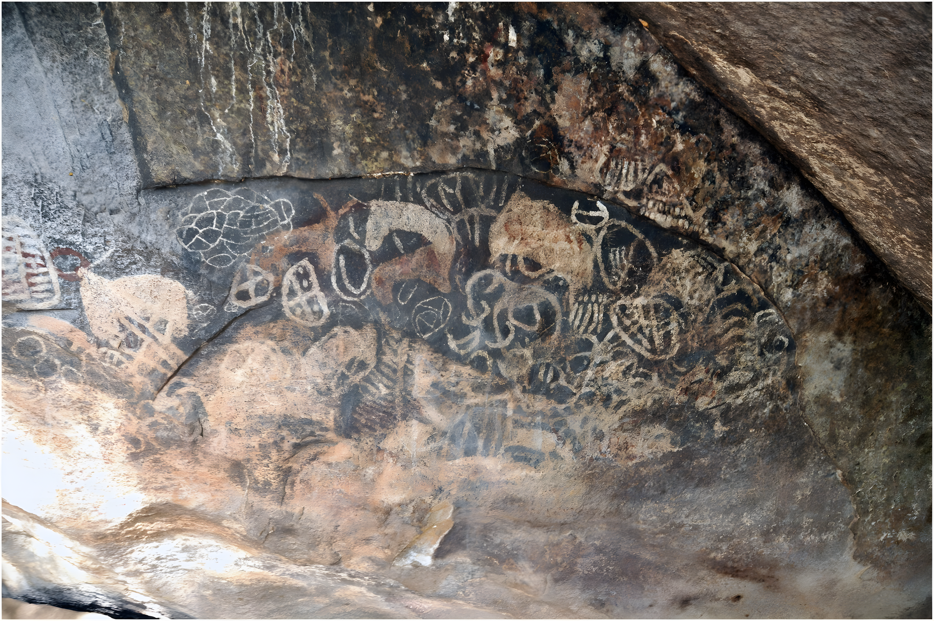 겹친 이미지를 분석하여 수천 년 동안 이 암벽에 거주한 서로 다른 문화 집단에 해당하는 네 가지 뚜렷한 그림 시기를 확인했다.