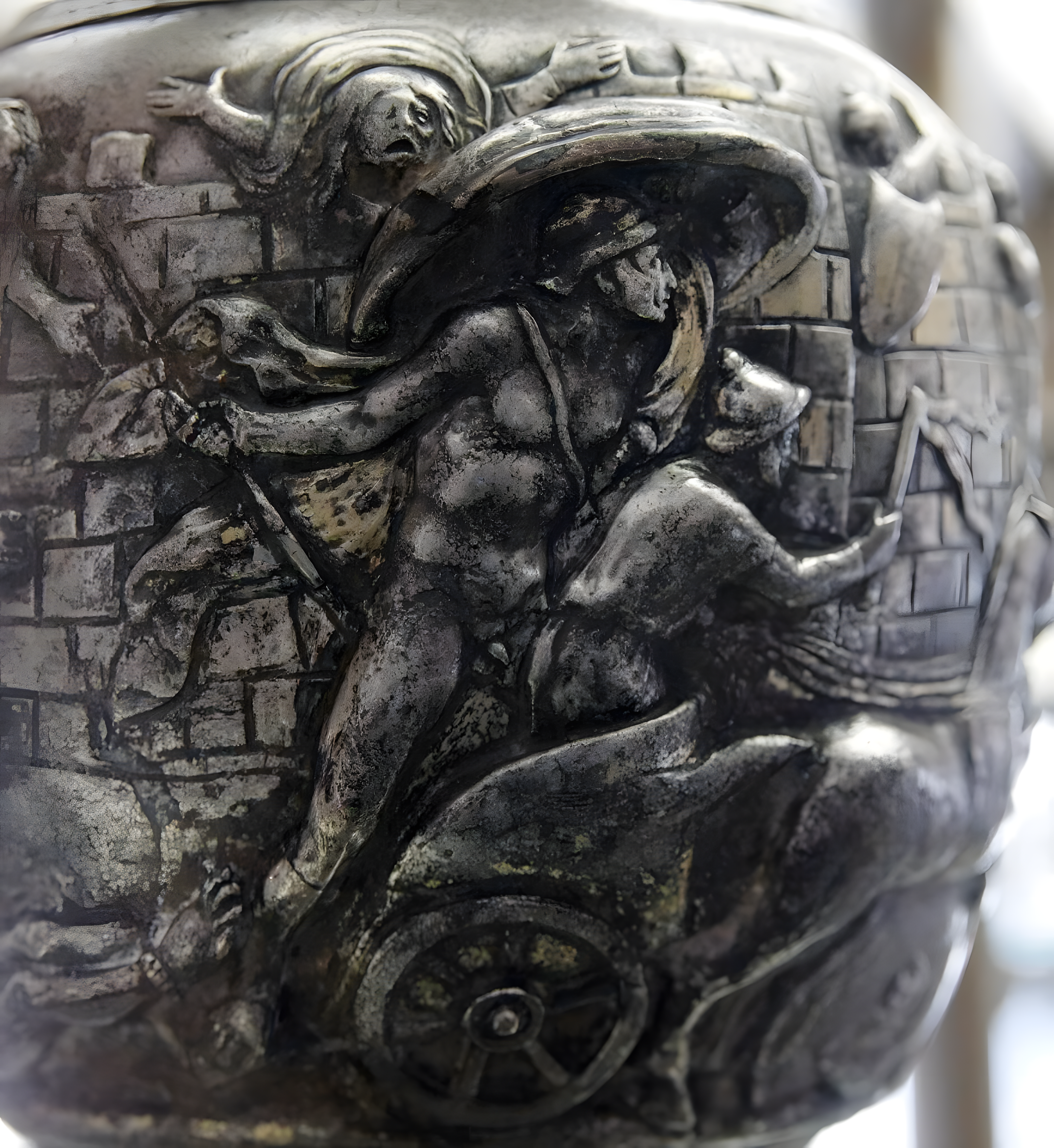 세 개 극적인 패널로 구성된 이 작품은 아킬레스Achilles와 헥토르Hector의 결투, 트로이 왕자의 시신이 끌려가는 장면, 그리고 프리아모스Priam 왕이 시신을 되찾고자 하는 마지막 순간을 따라간다.