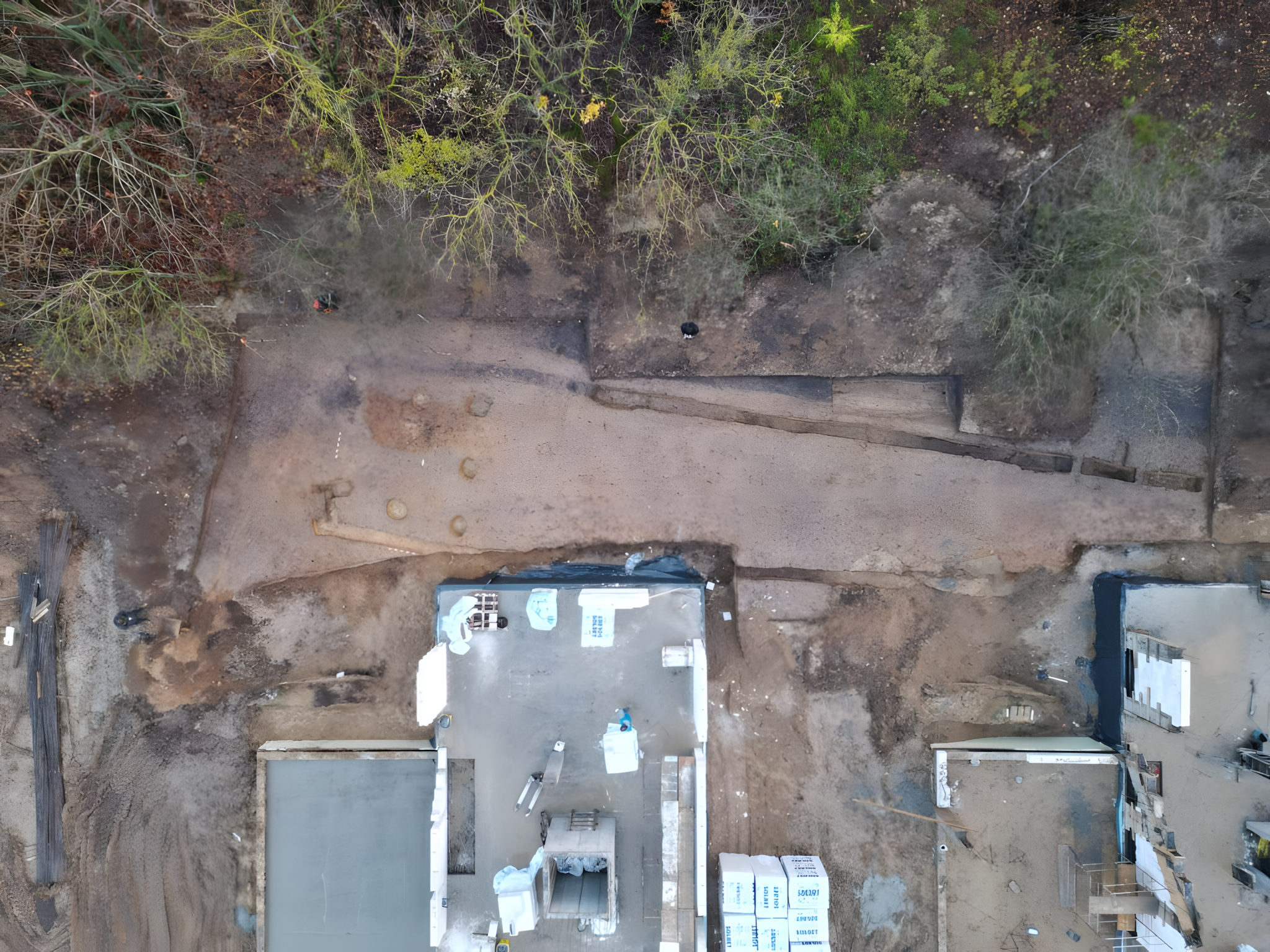 남쪽 면에서는 길이 약 30미터, 너비 최대 2.5미터 도랑ditch이 발견되었는데, 이는 흙더미를 쌓는 과정에서 흙을 운반하기 위해 만든 것으로 추정한다.