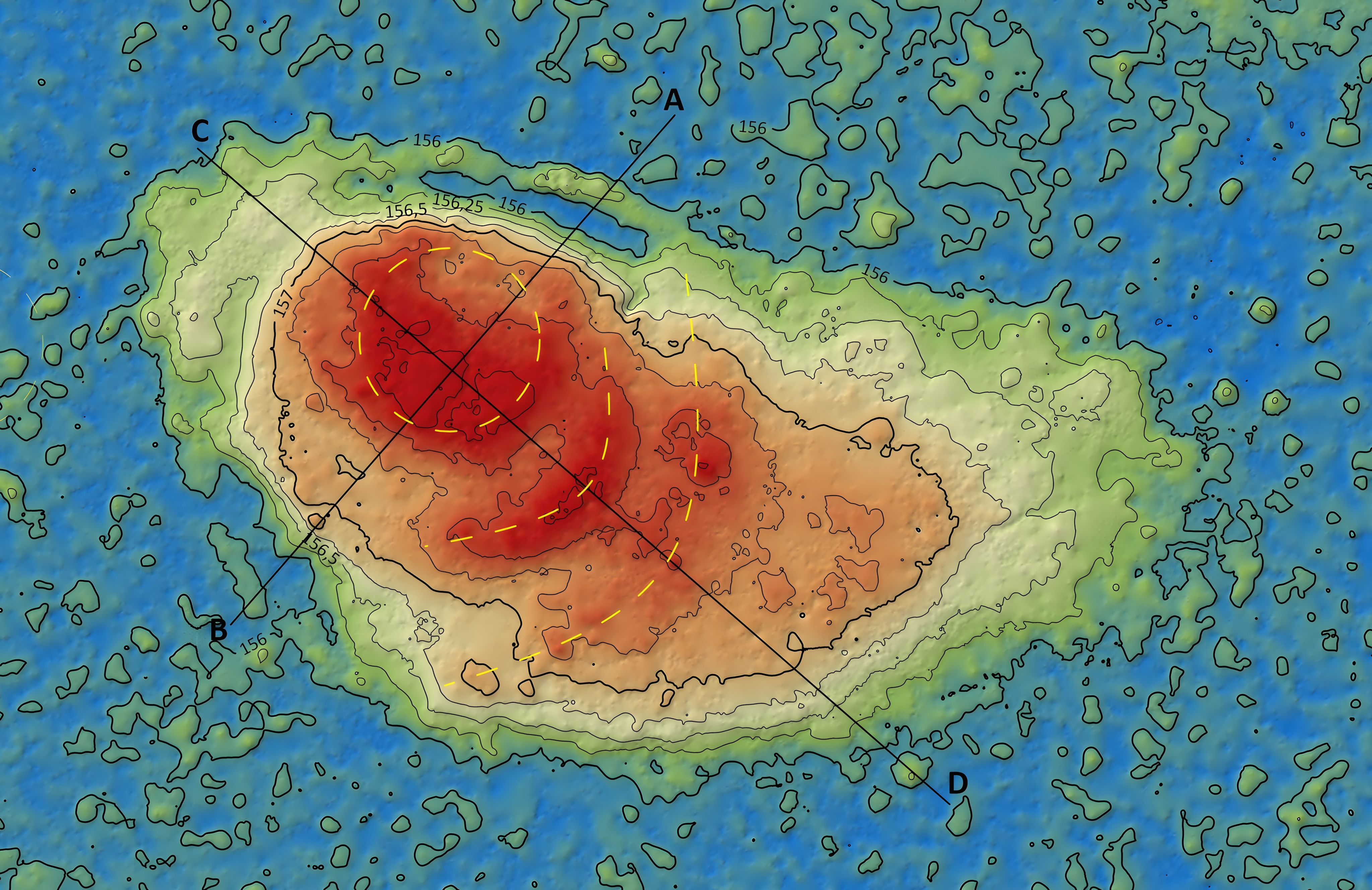 LiDAR 모델과 항공 사진 분석 결과, 산성의 형태와 일치하는 솟아오른 폐쇄형 지역이 확인되었다.