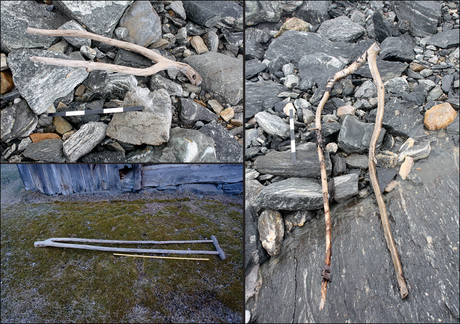 빙하가 후퇴하면서 이끼가 없는 암반 지대가 드러났고, 그곳에서 유물들이 맨땅에 그대로 놓여 있는 채로 발견되었다.