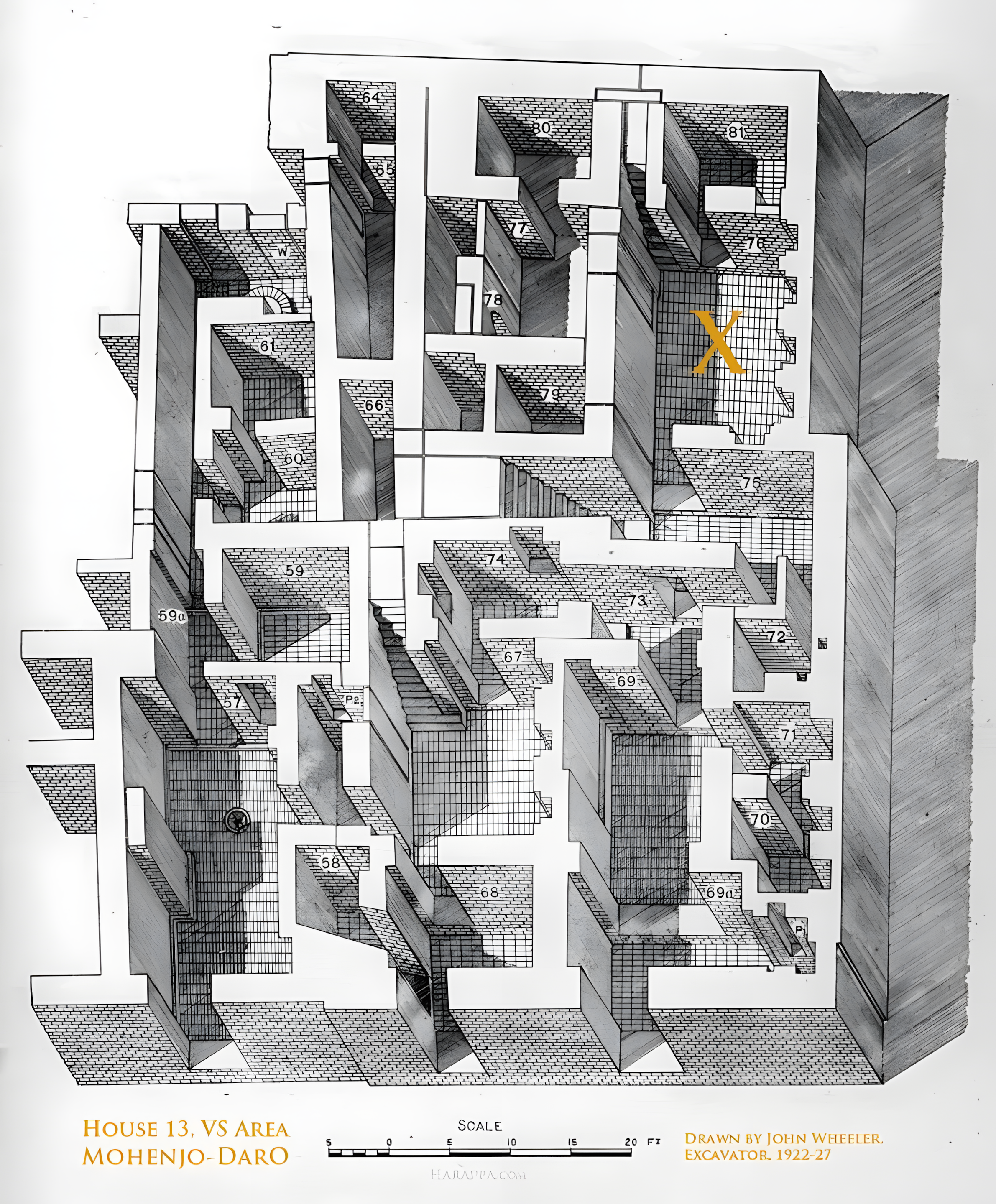 "모헨조다로Mohenjo-daro VS 구역Area에 있는 13번 집[House 13]은 평면 배치가 [다른 건축물들에 견주어] 더욱 정교하다...