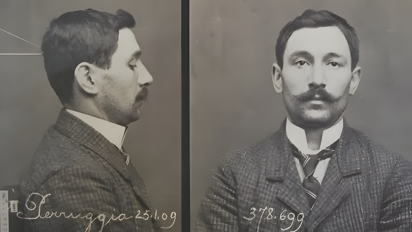 수사가 최근 루브르 박물관에서 일한 사람들에게까지 확대되자, 31세 이탈리아인 빈첸초 페루자Vincenzo Peruggia는 파리 자택에서 심문을 받았다.