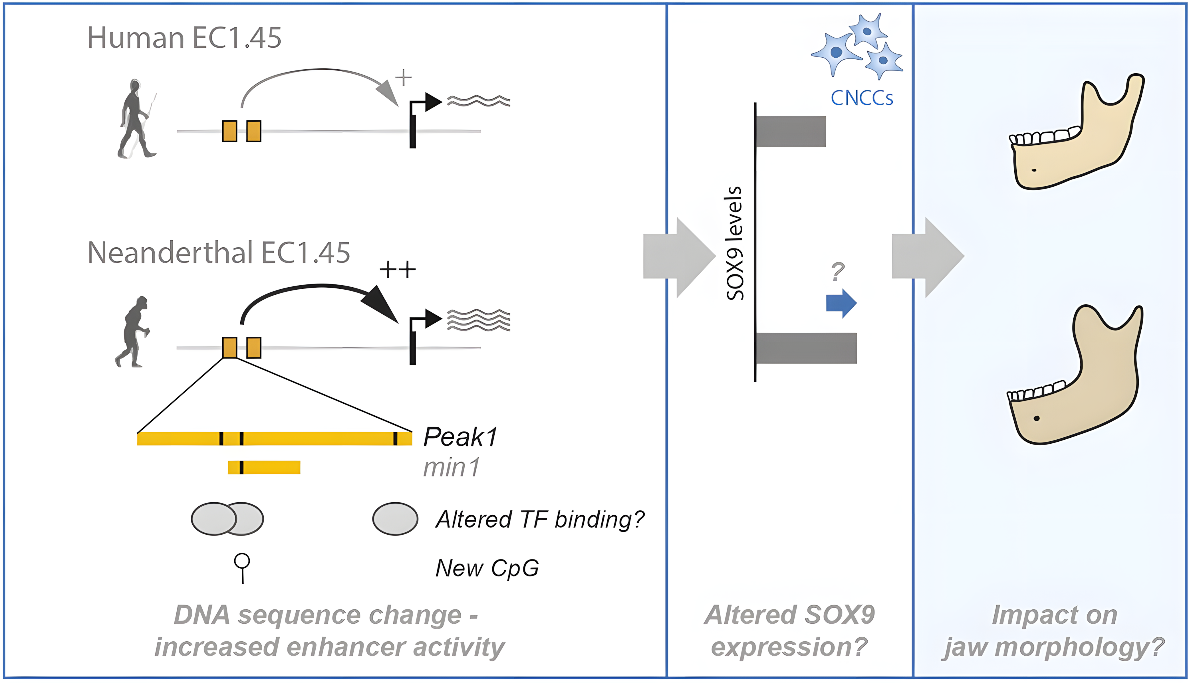 Development 저널에 게재된 이 연구에서는 네안데르탈인 DNA 영역이 인간보다 턱 형성 유전자를 더 잘 활성화한다는 사실을 보여주며, 네안데르탈인 아래턱이 더 큰 이유 중 하나를 밝혀냈다.