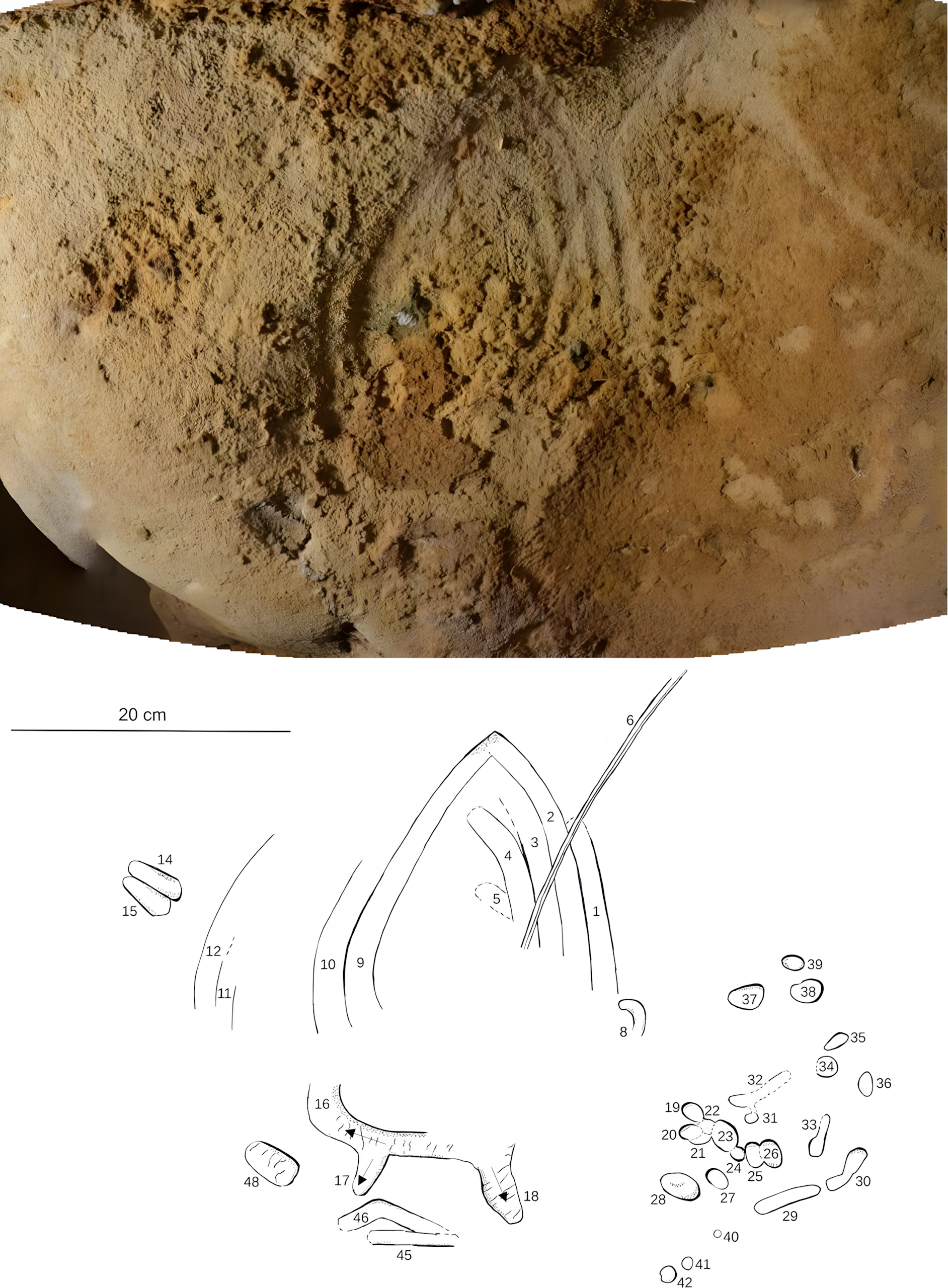 앞서 언급한 스페인 유적과 마찬가지로, 이는 호모 사피엔스가 이 지역에 도착하기 훨씬 전의 일이며, 동굴에는 네안데르탈인이 만든 도구들만 남아 있다.