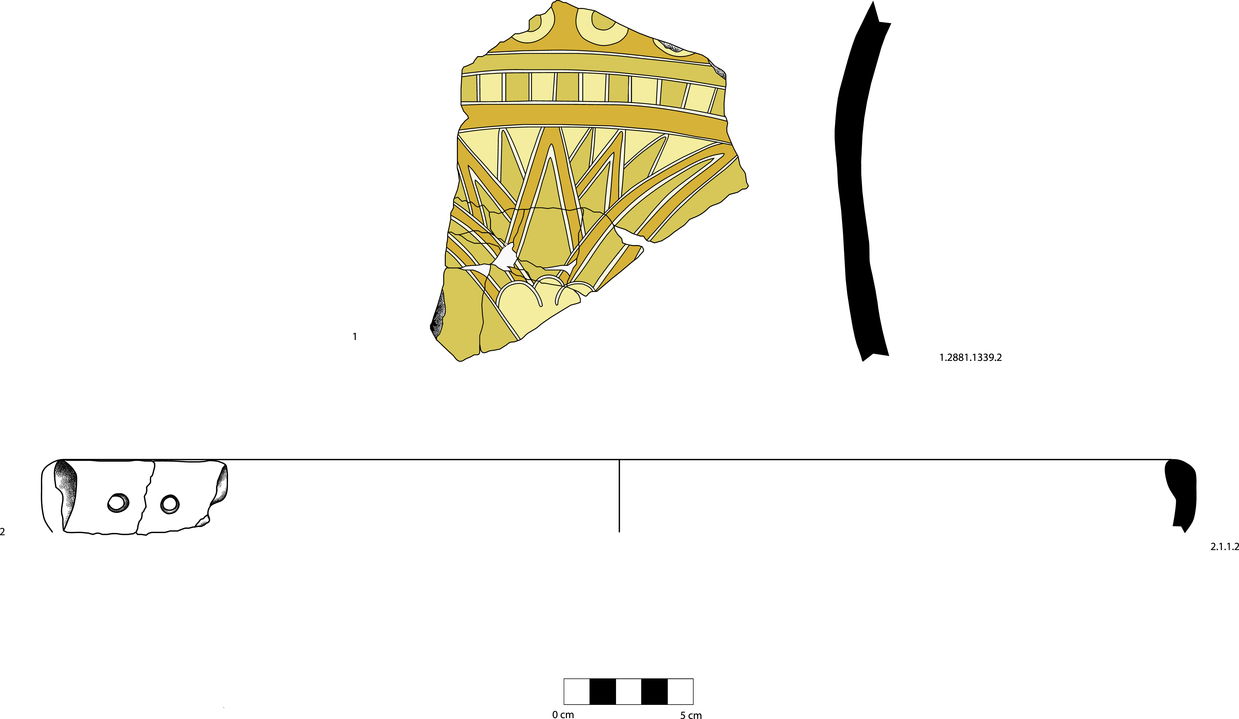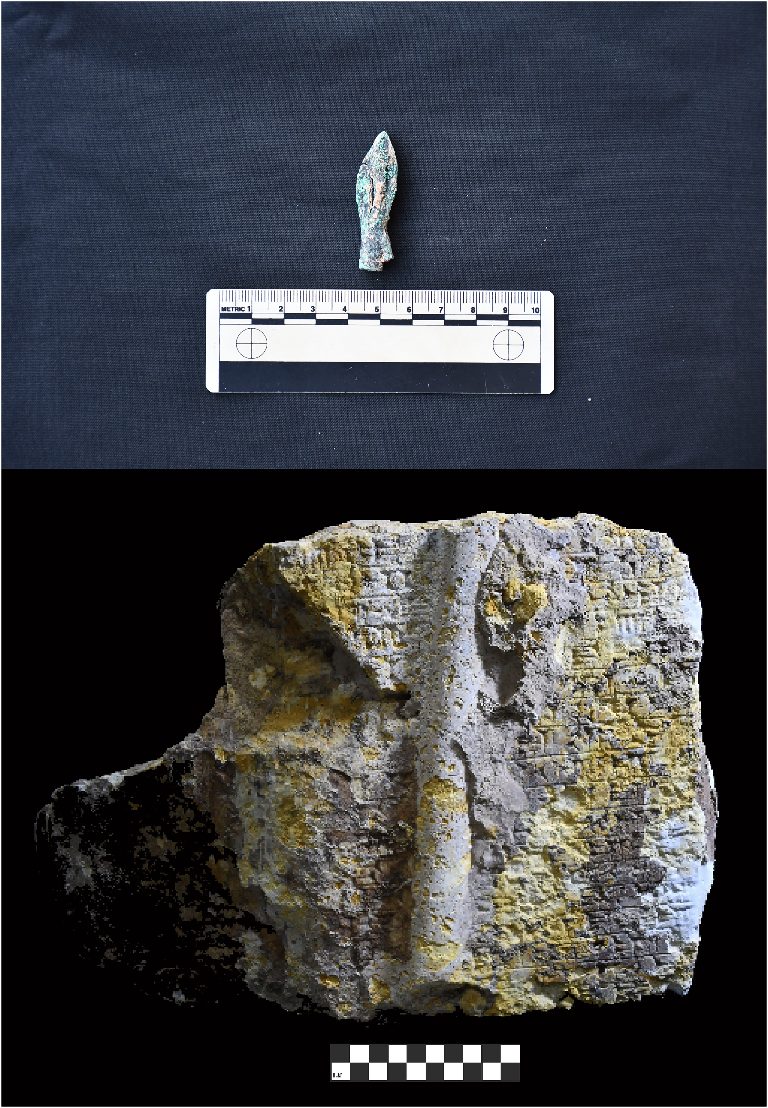 유적에는 청동과 철제 화살촉, 토기, 장식된 뼈 단추, 인골, 그리고 대형 왕실 석비 조각이 다수 포함된다.